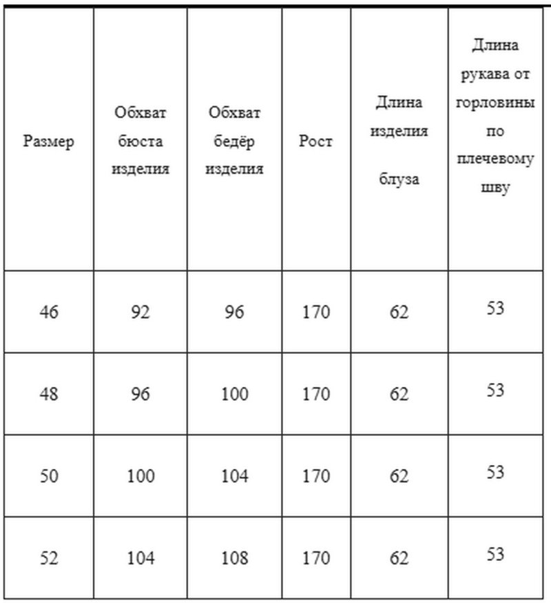 Длина блузы 62 см