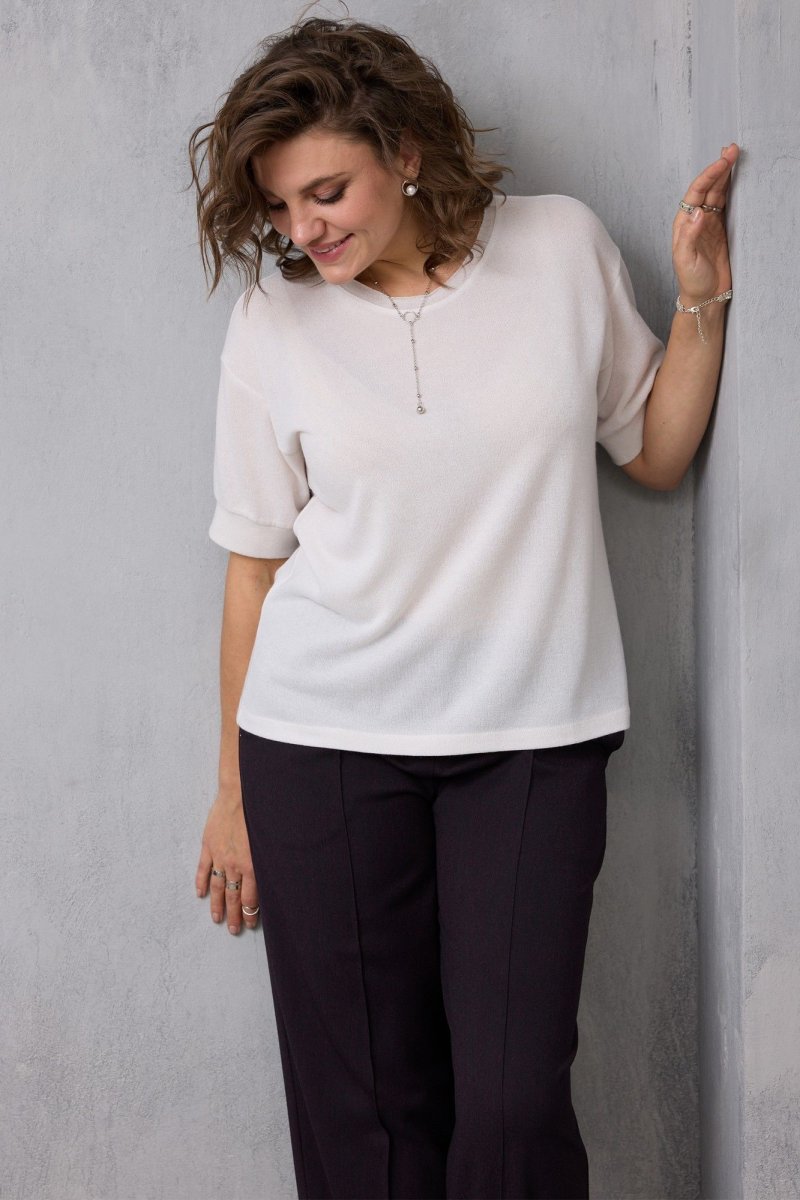 Хотите добавить в свой гардероб новинку, которая будет одновременно комфортной и стильной? Эта трикотажная блуза с коротким рукавом – именно то, что Вам нужно! Нежный трикотаж окутает Вас мягкостью, а лаконичный крой с коротким рукавом подчеркнет вашу женственность. Модель станет универсальной основой для множества образов – от повседневных до более элегантных.