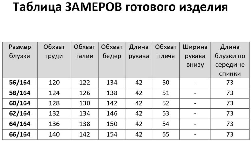 Размер Обхват груди (см) Грудь Обхват талии (см) Талия Обхват бедер (см) Бедра