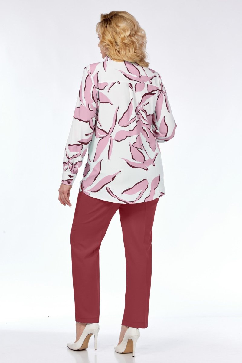 Блуза прямого силуэта, выполнена из нежной, приятной ткани, стойкой к сминанию. Воротник классический, рубашечный на отрезной стойке, эстетично подчеркнут вырез горловины, что придает изделию дополненный образ. Рукав втачной, низ обработан притачной манжетой. По спинке заложена и застрочена бантовая складка. Низ изделия асимметричный.