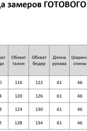 Размер Обхват груди (см) Грудь Обхват талии (см) Талия Обхват бедер (см) Бедра