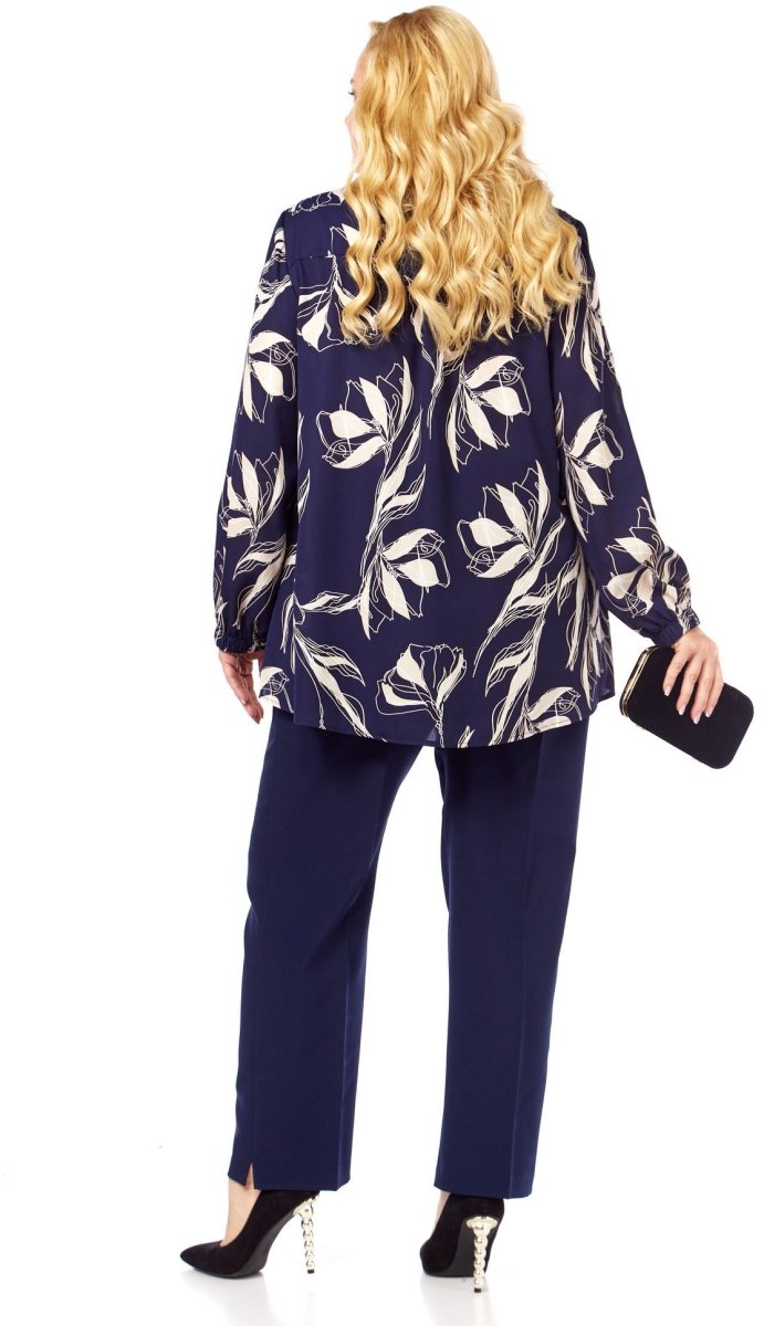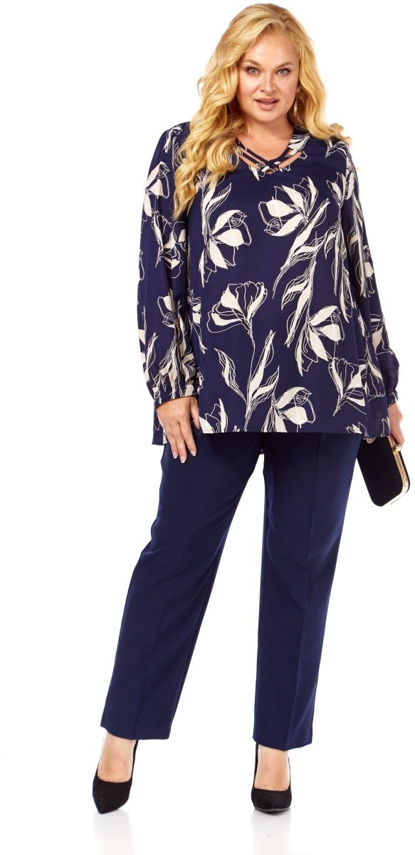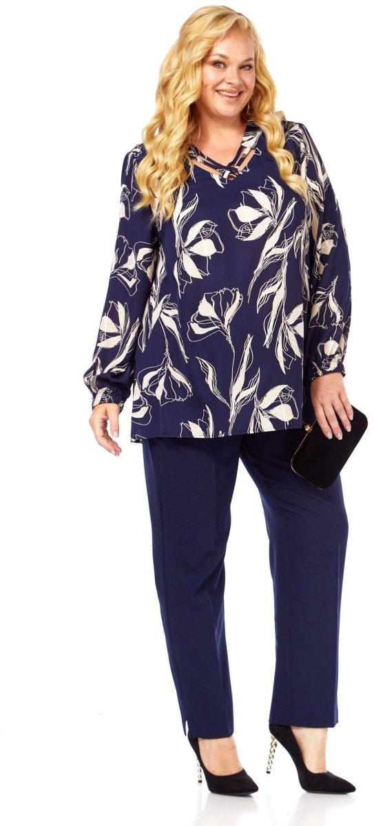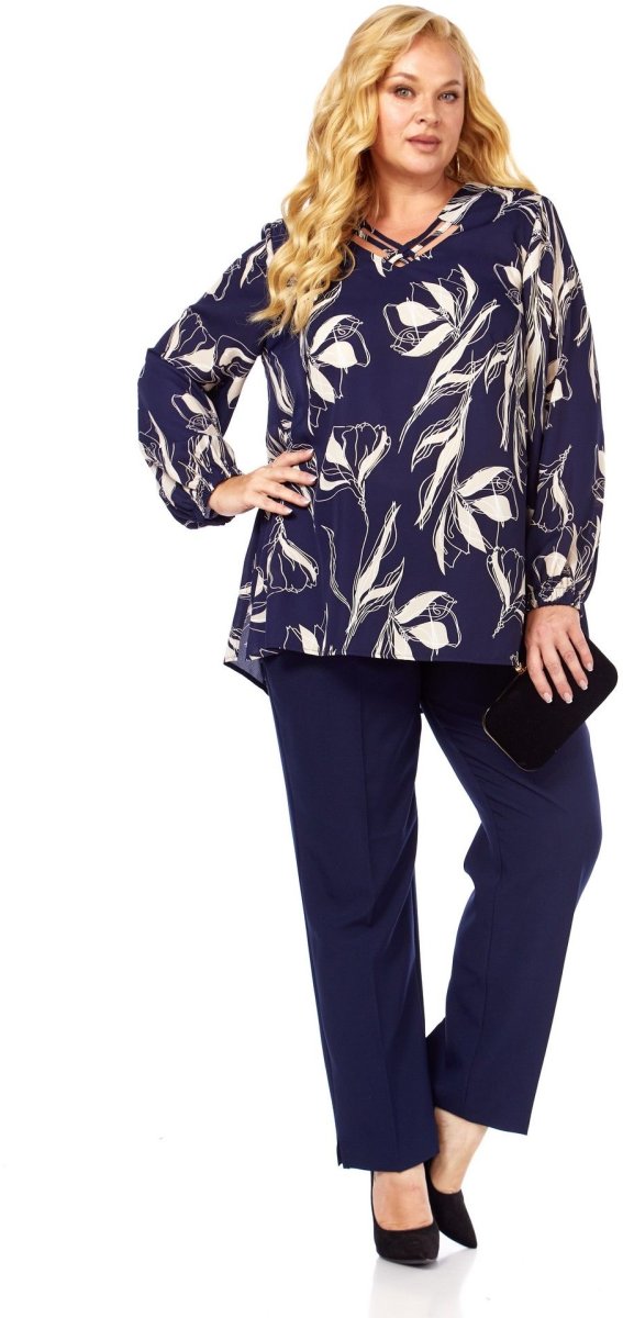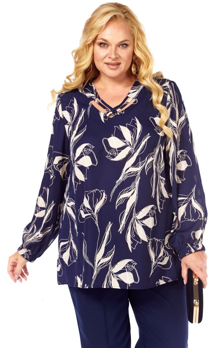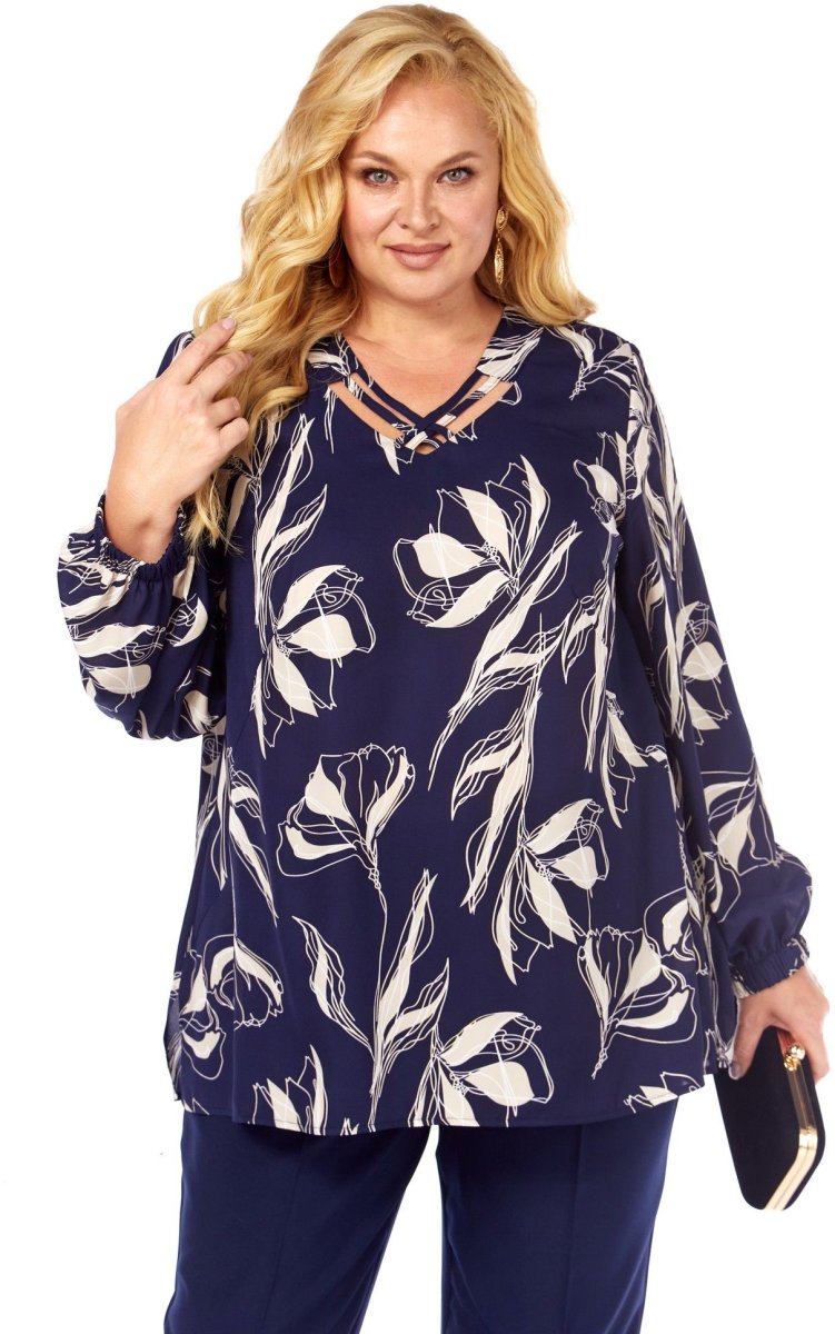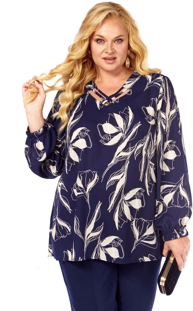 Женственная блуза свободного силуэта, выполнена из струящейся принтованной ткани. Эстетично подчеркнут V-образный вырез горловины, что служит декоративным элементом изделия. Рукав втачной, свободный, создает современный стиль образу, низ рукава на резинке вкруговую. Спинка с кокеткой и бантовой складкой по центру. В боковых швах предусмотрены разрезы.