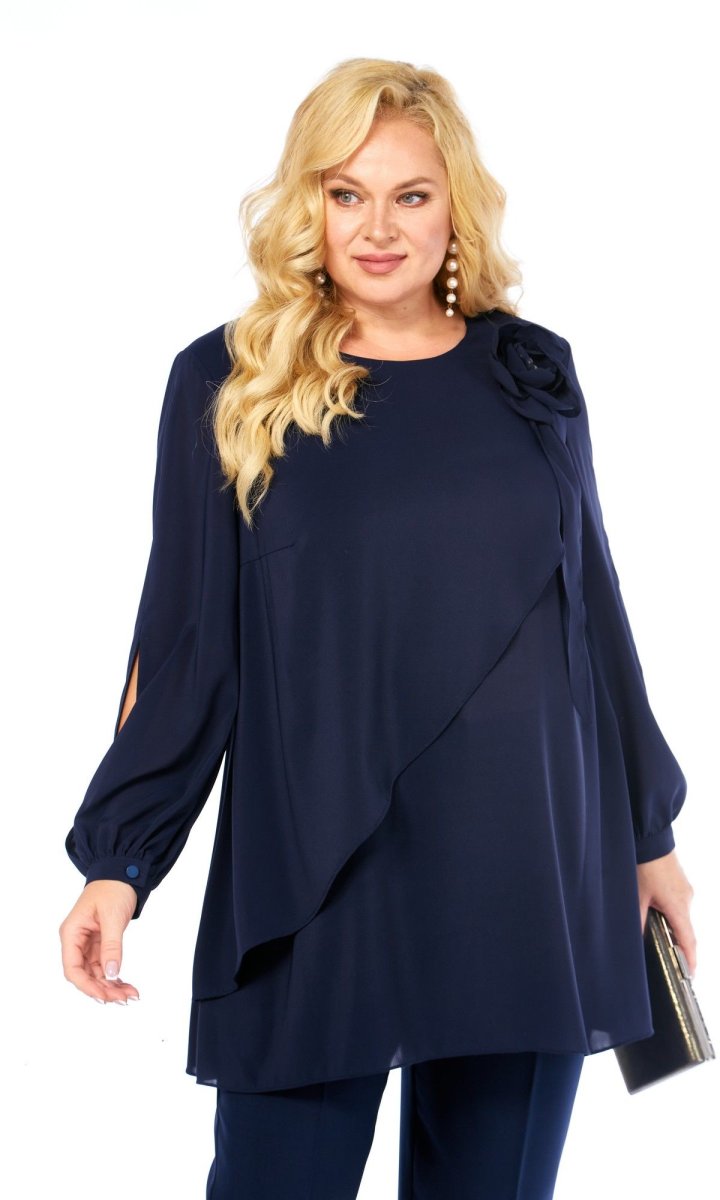 Блуза полуприлегающего кроя позволит чувствовать себя ярко и уверенно, выполнена из струящегося из креп-шифона. Вырез горловины аккуратной округлой формы. Рукав втачной, свободный, низ имеет фигурный разрез, что обеспечивает легкость и декоративный эффект.