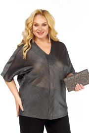 Блуза полуприлегающего силуэта, выполнена из струящейся ткани. Эстетично подчеркнут V-образный вырез горловины, что служит декоративным элементом. Изделие с цельнокроеным рукавом, создает современный стиль образу.