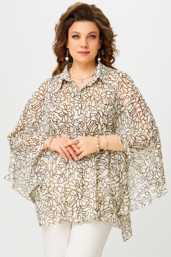 Женская блузка аля-Пугачева "Ветрана" выполнена из легкой шифоновой ткани. Блузка расширенная к низу. Полочка на потайную застежку на петли и пуговицы. Воротник рубашечного типа на стойке. Низ обработан швом в подгибку. Эта блузка украсит вас на любом празднике или городе. Вы будете королевой!