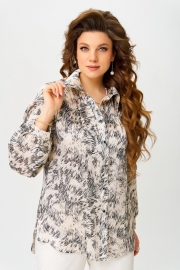 Женская блузка "Хариса" выполнена из текстильной ткани. Блузка прямого силуэта. Воротник отложной рубашечного типа на стойке, застежка на петли и пуговицы, планка отрезная. По спинке блузки кокетка, рукав в блузке втачной, по низку рукава манжет с застежкой на петлю и пуговицы. По полочке сборка и отрезная кокетка. Низ изделия обработан швом в подгибку с открытым срезом. В боковых швах блузки - разрезы.