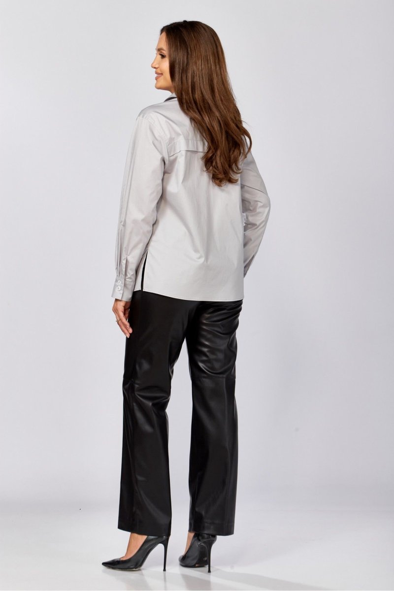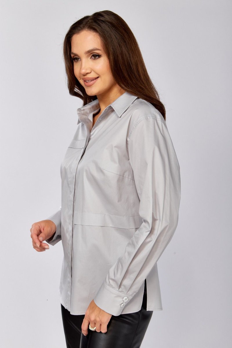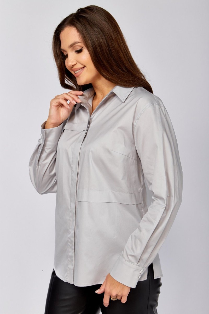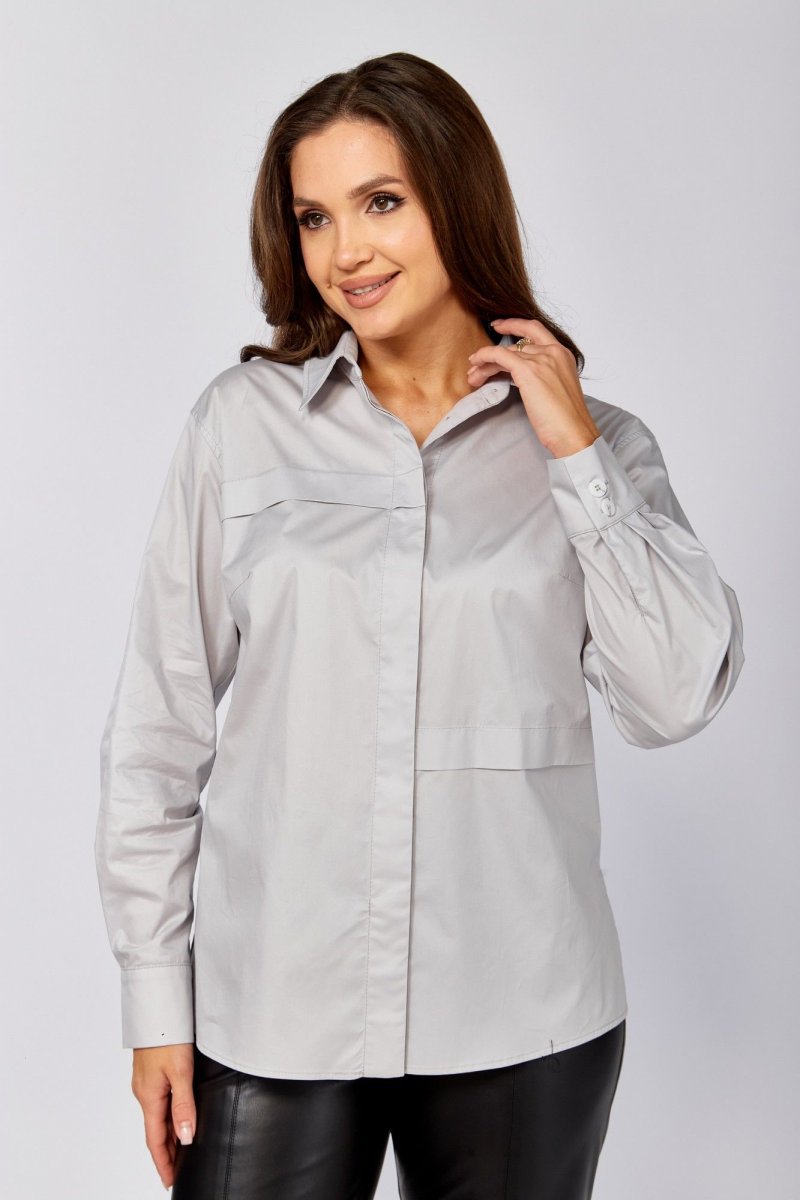 Хлопковая блузка-рубашка прямого силуэта. Рукав длинный рубашечный на манжете, воротник отложной рубашечный. По полочкам и спинке горизонтальные застроченные декоративные складки В боковых швах по низу разрезы