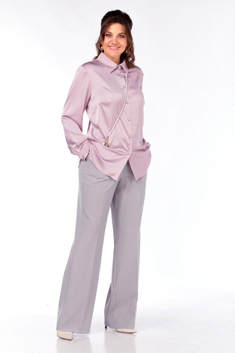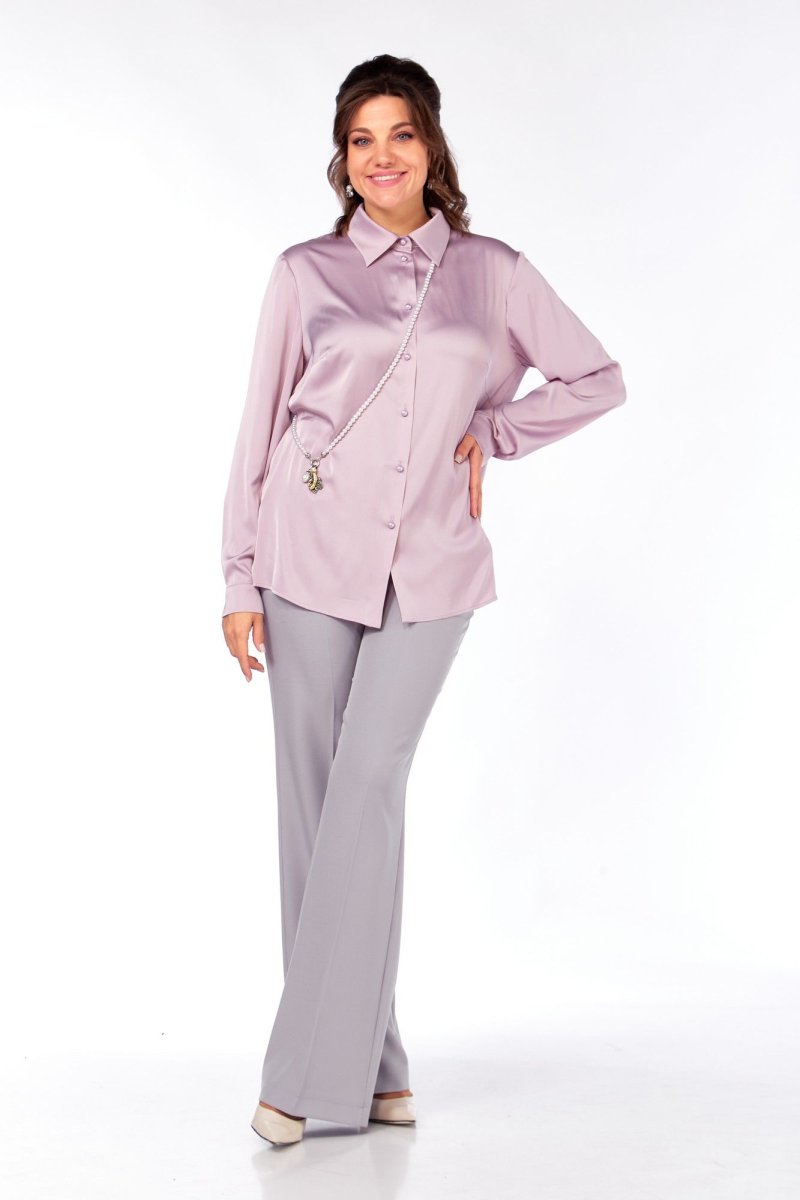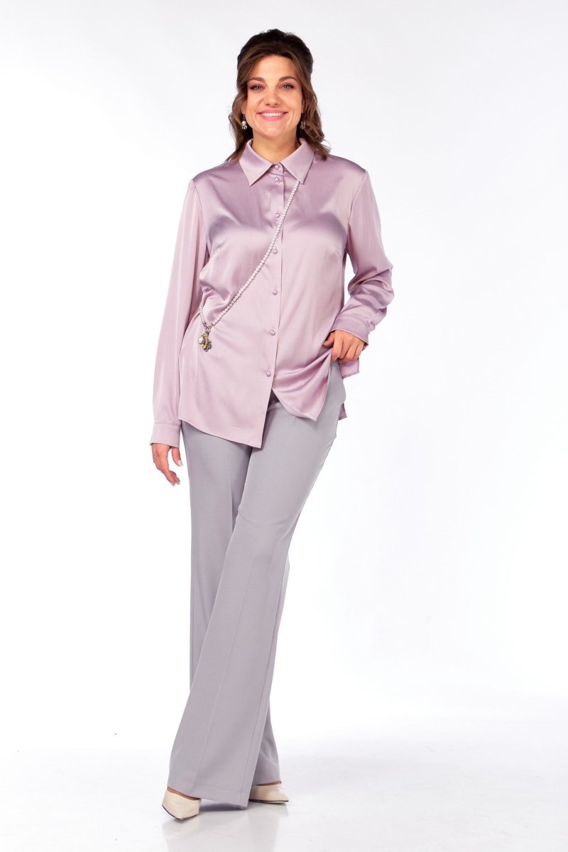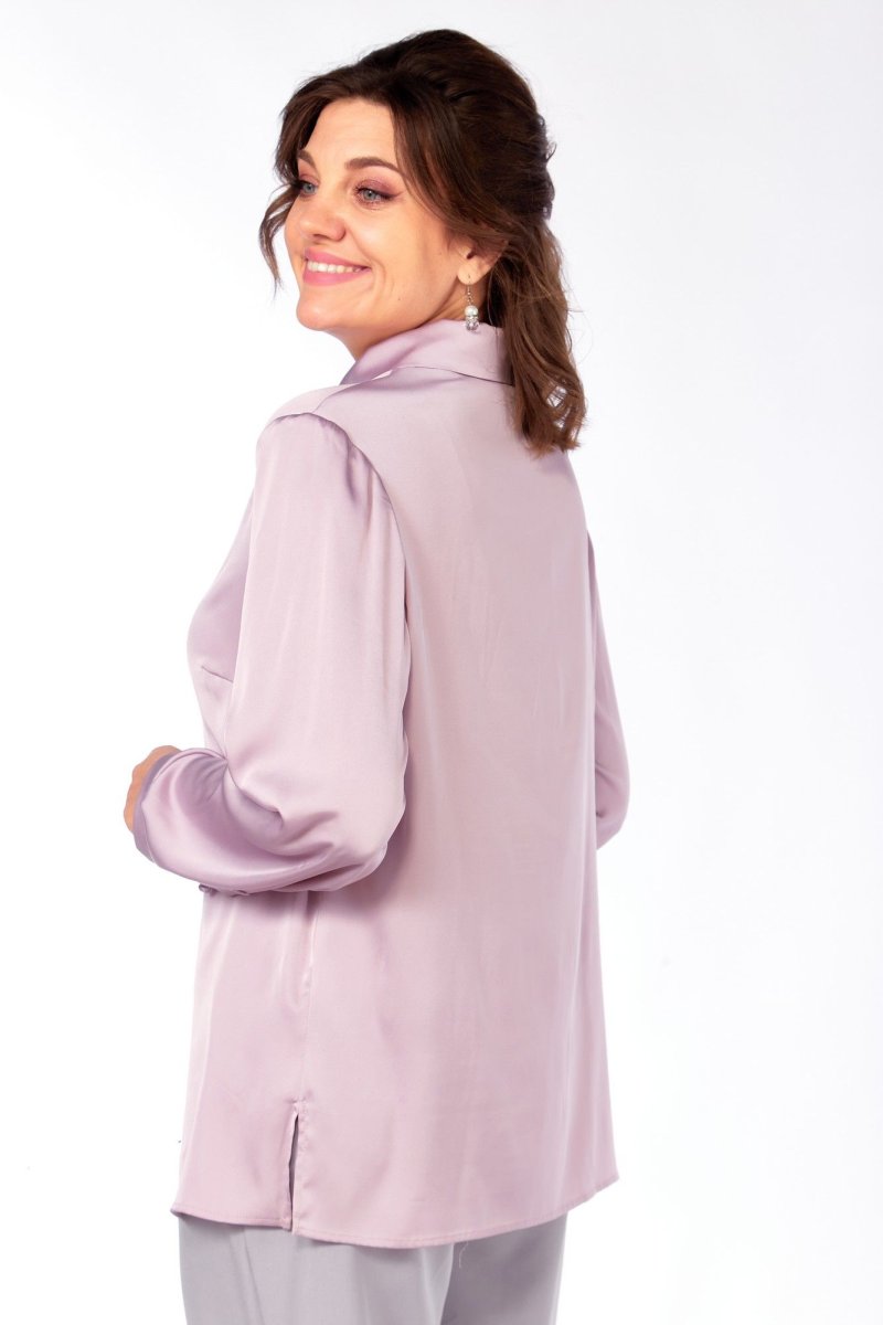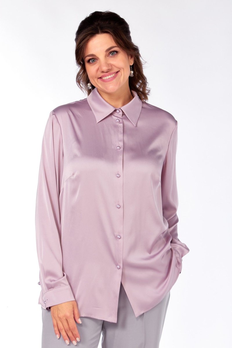 Шикарная блузка из струящейся ткани с матовым блеском, рубашечным воротником и застежкой на петли и пуговицы, нагрудными вытачками. Рукав длинный на манжете, застегивающийся на пуговицы. По боковым швам разрезы.