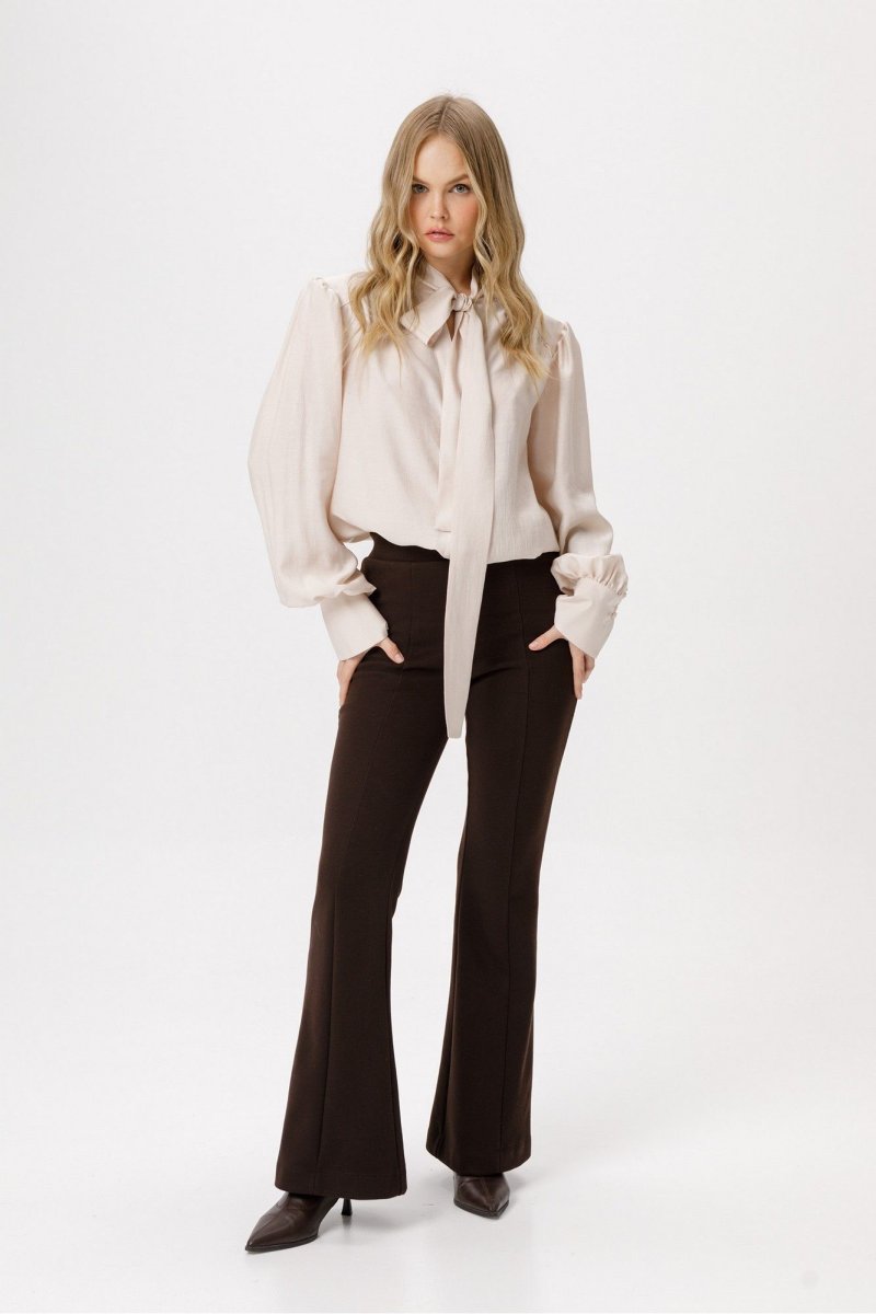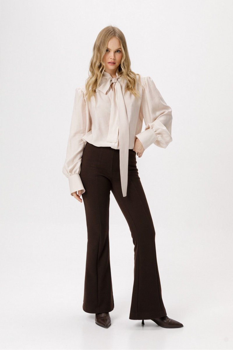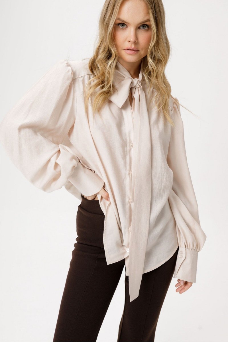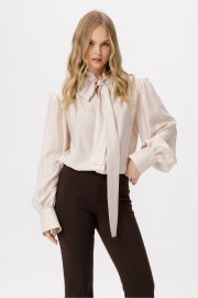 Блуза из полупрозрачной вискозы свободного силуэта с воротником-бантом.