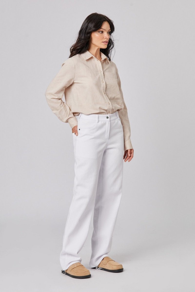 Блуза: - полуприталенный силуэт - отрезная по переду и спинке - рубашечный воротник - застежка на пуговицы - рукав втачной с манжетой - фигурный низ - по переду накладной карман.