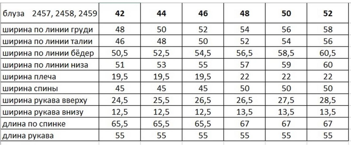 Таблица размеров