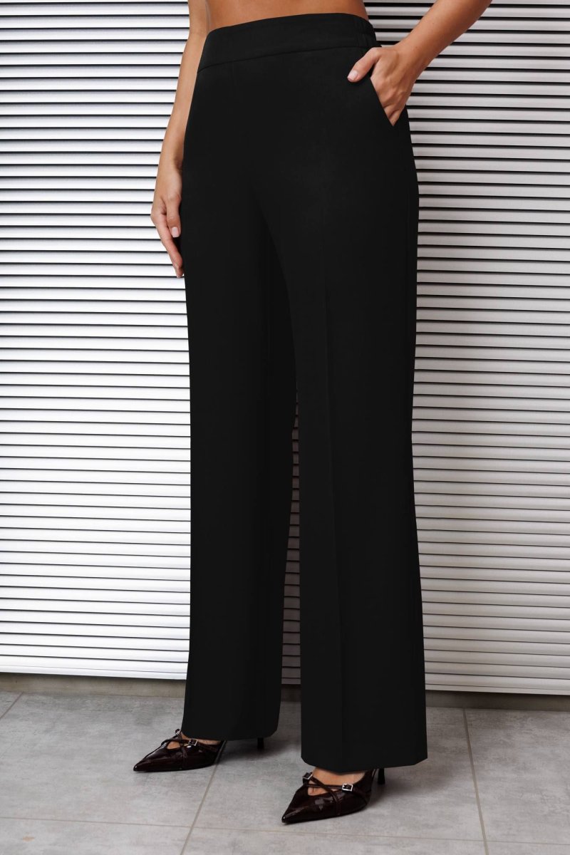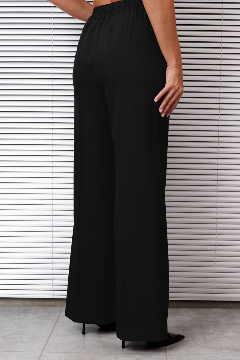 Брюки прямые, свободные со стрелками, на поясе, по задней части пояса с эластичной тесьмой,с боковыми карманами.