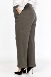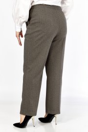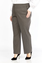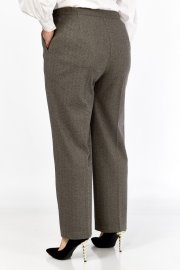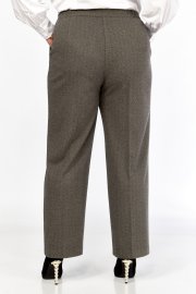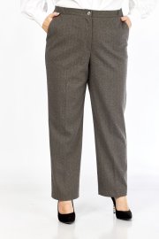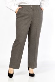 Брюки прямого кроя, спереди обработаны боковые скошенные функциональные карманы. Пояс притачной, частично на резинке, что обеспечивает комфортную посадку. Застежка спереди брюк на молнию и петлю-пуговицу. Ткань обеспечит уют в осеннюю погоду, сохраняя тепло.