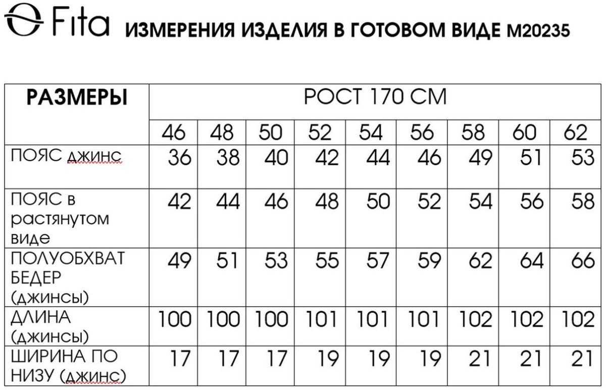 Размеры: 48, 50, 52, 54, 56, 58, 60, 62