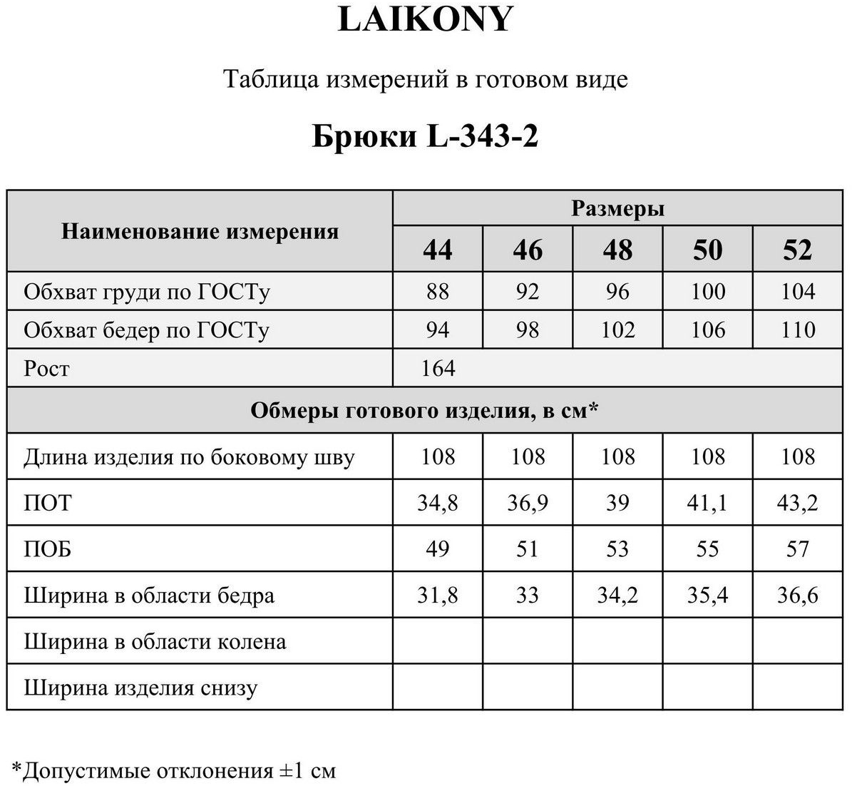 Комплектация: Брюки