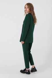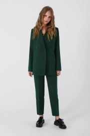 Классические укороченные брюки из текстильной ткани. Детали: брюки со средней посадкой, притачной пояс со шлевками, передние половины с небольшими мягкими складками и заутюженными стрелками, застежка на молнию и пуговицу, боковые карманы. Длина по боковому шву с поясом около 94 в размерах 40-46 и около 95,5 см в размерах 48-52 Длина по внутреннему шву около 67 см