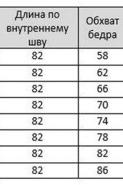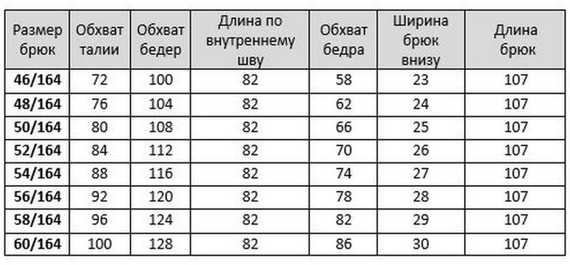 Таблица размеров