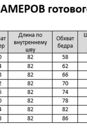 Таблица размеров