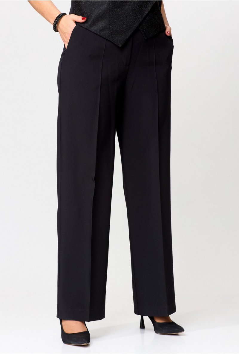 Черные брюки отлично смотрятся со многими видами блузок, рубашек и свитеров. Независимо от того, предпочитаете ли вы простые или более изысканные наряды, строгие однотонные брюки вам обязательно пригодятся. Выбрав эти элегантные брюки, вы можете быть уверены, что создадите множество удачных стилизаций. Независимо от того, наденете ли вы их в офис, на семейное торжество или на свидание, эти идеально сшитые женские длинные брюки – хороший выбор.