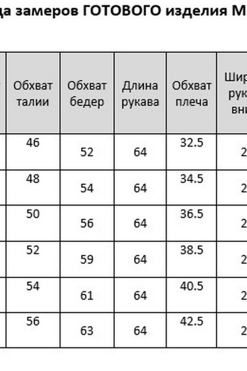 Размеры: 46, 48, 50, 52, 54, 56, 58, 60, 62