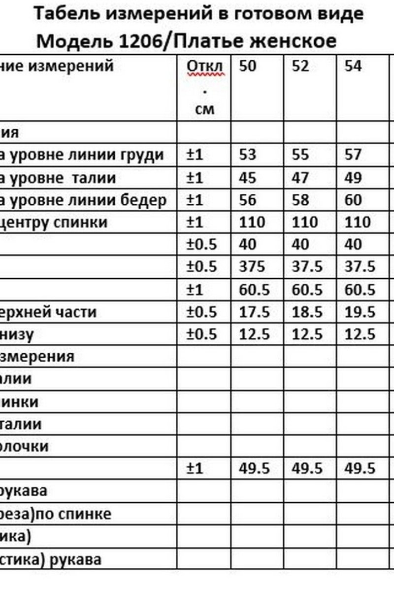 Таблица размеров
