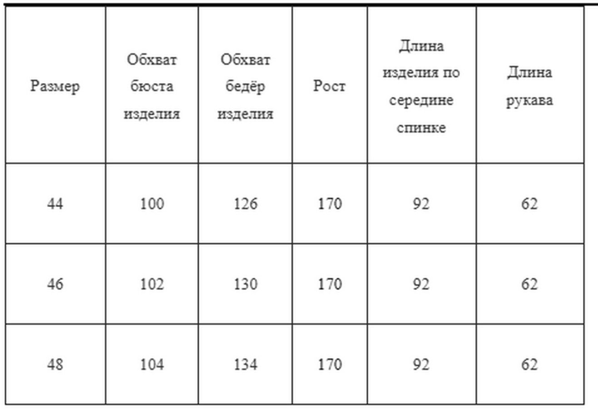 Размеры: 44, 46, 48, 50, 52, 54, 56, 58