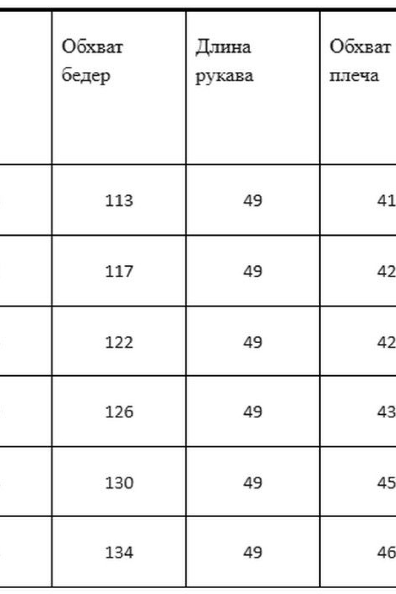 Размер Обхват груди (см) Грудь Обхват талии (см) Талия Обхват бедер (см) Бедра