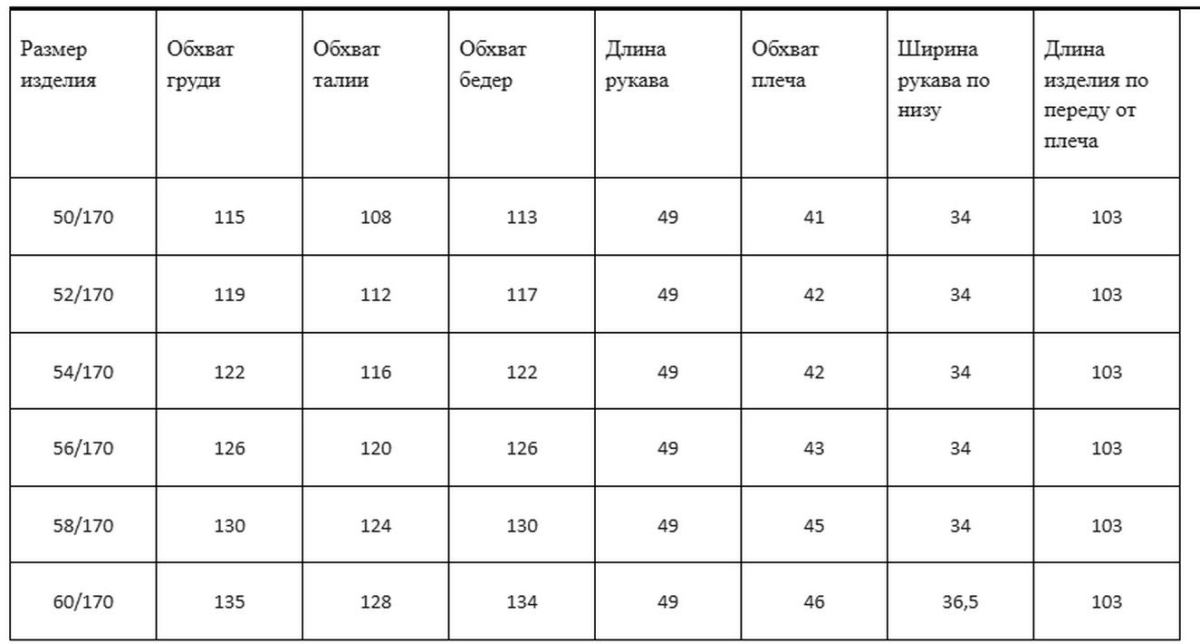 Размер Обхват груди (см) Грудь Обхват талии (см) Талия Обхват бедер (см) Бедра