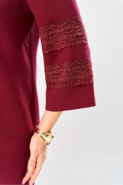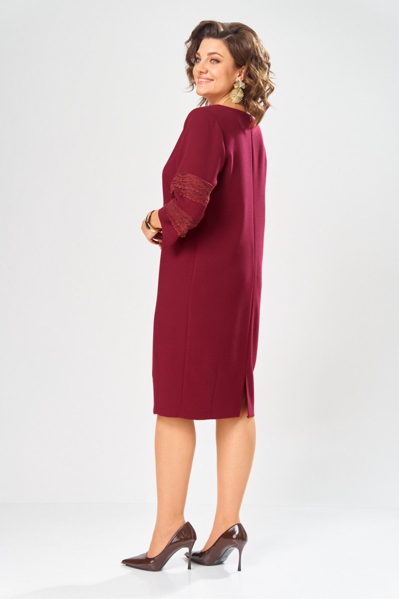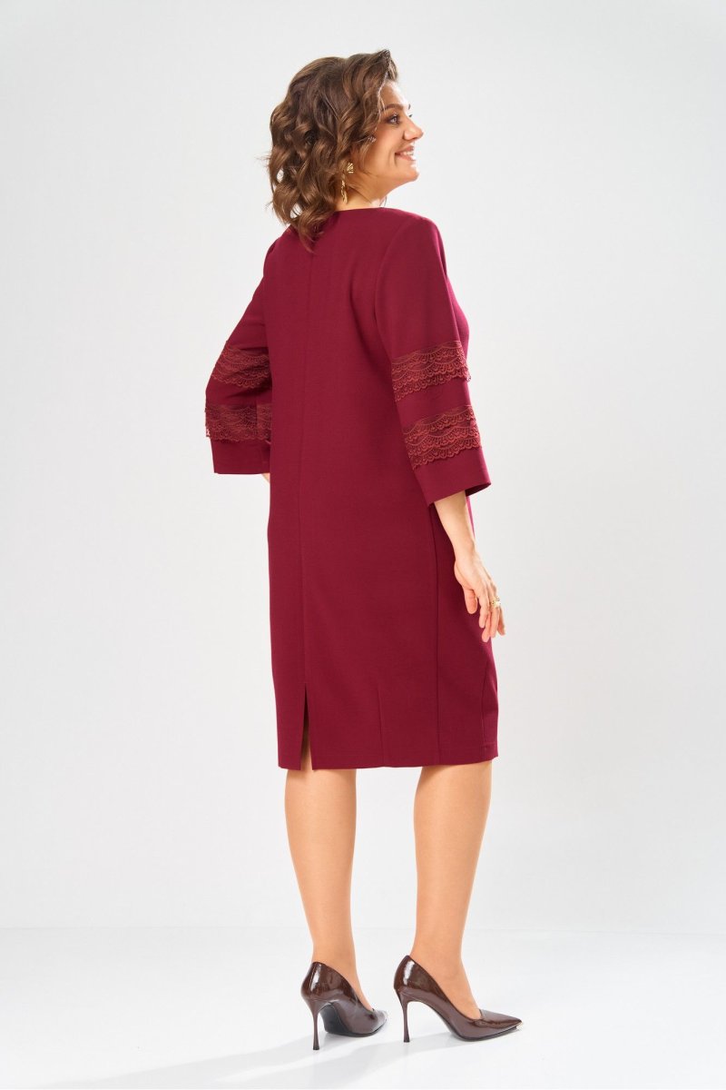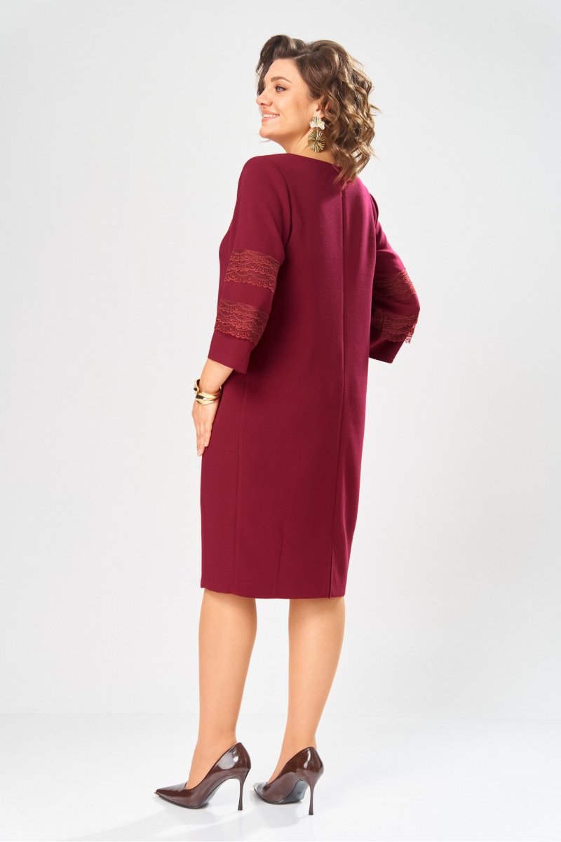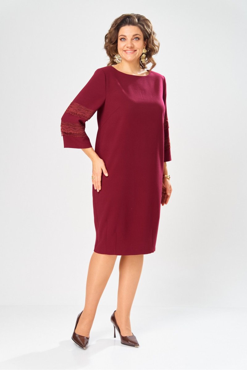 Праздничное платье от бренда «AXXA» О-образного силуэта, выполнено из качественной плательной ткани, что придает изделию определенную элегантность. В области низа спинки и полочки изделия расположены вытачки, благодаря которым силуэт платья принимает слегка зауженную форму. Спинка со средним швом. Сзади платье на потайной молнии. Горловина округлая типа лодочка. Рукав втачной состоит из трех частей. Средняя часть рукава декорирована ажурным кружевом в два ряда, что придает нежность и изящество данному изделию.