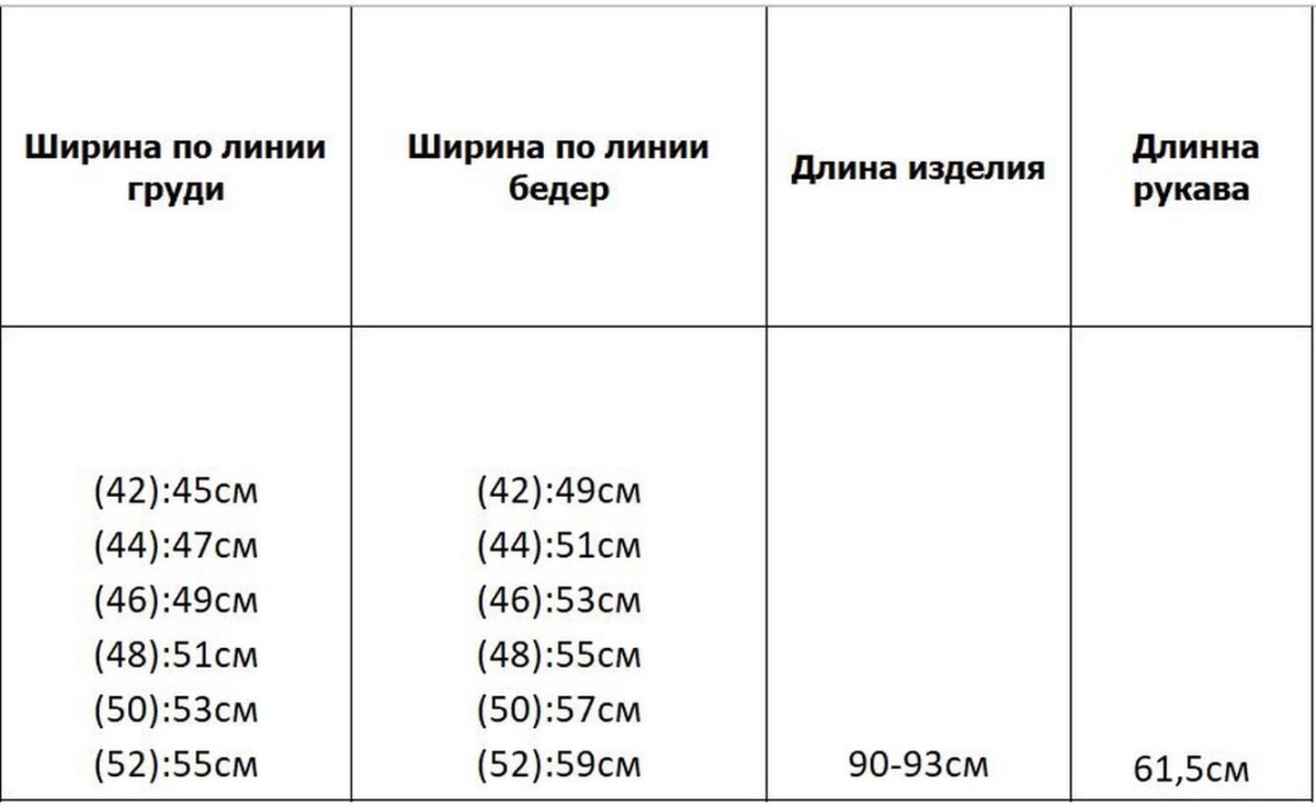 Размеры: 50, 52, 54, 56, 58, 60, 62, 64, 59