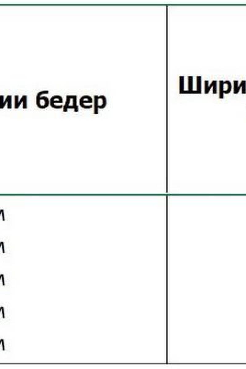 Размер Обхват груди (см) Грудь Обхват талии (см) Талия Обхват бедер (см) Бедра