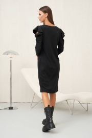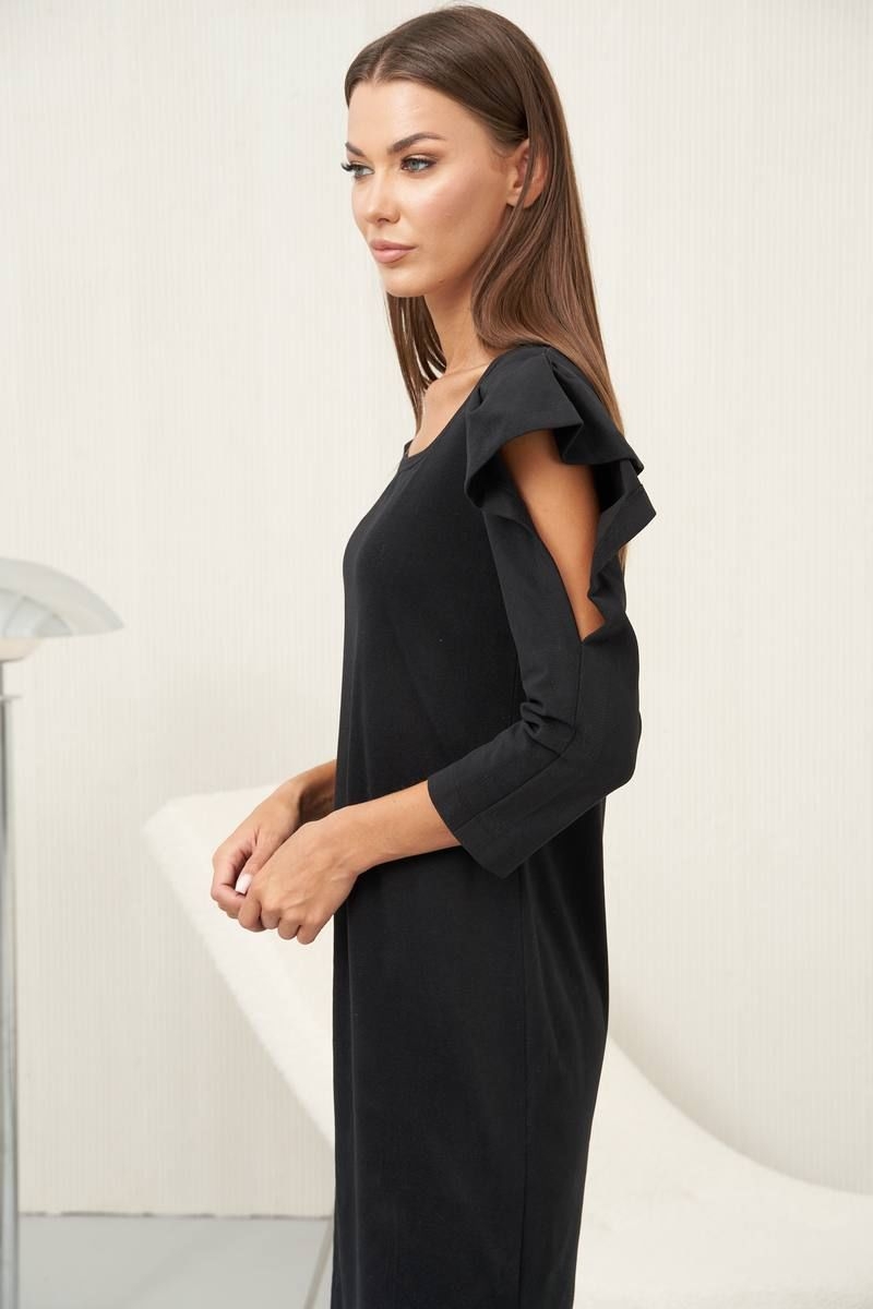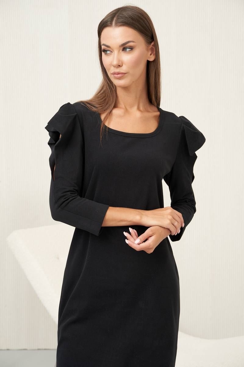 Платье - предмет номер один в нашем гардеробе. Мы любим их за универсальность, ведь это 80% всего нашего образа. Невероятно комфортное, из мягкого супер-эластичного трикотажного полотна с легким эффектом замша в классическом черном цвете. О чем еще может мечтать любая из нас. Свободный упрямленный покрой, рукав необычной формы со складками и интригующей каплей в верхней части длиной 3/4. Вырез каре со слегка скругленными углами. Длина рукава около 42 см. Длина платья коло 102 см.