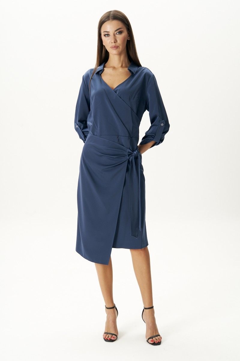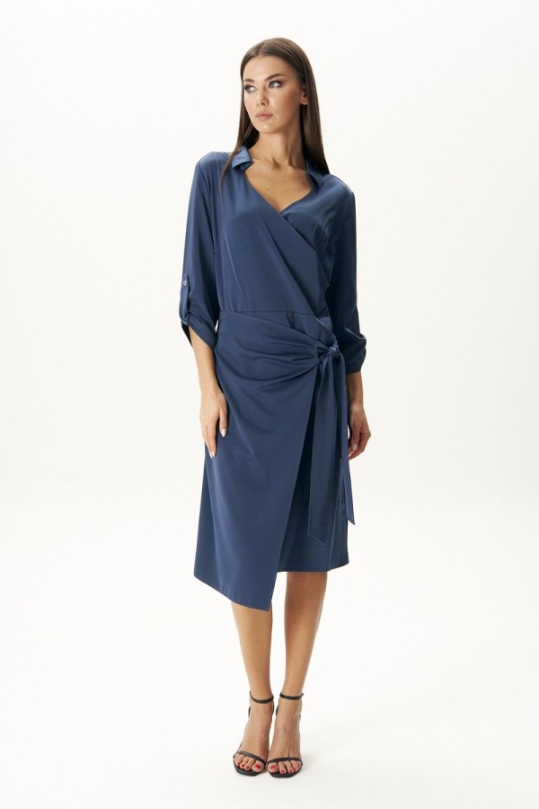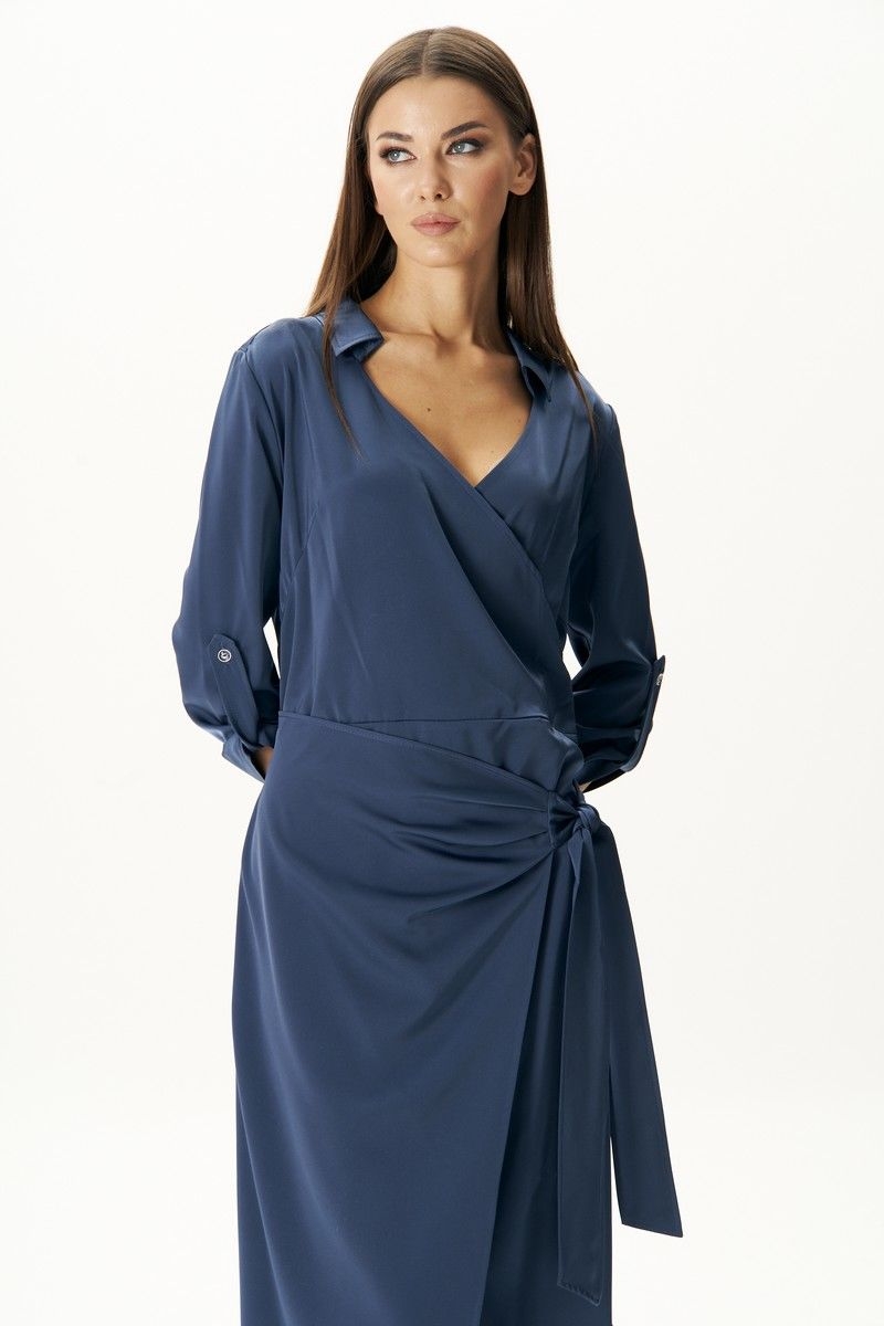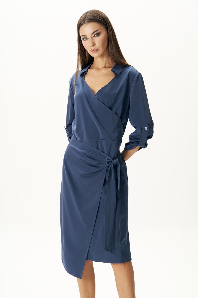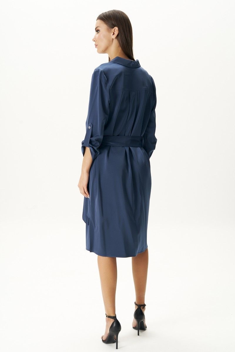 Модель – идеальная для торжественного выхода, да и в принципе для повседневного лука. Конечно же это платье – рубашка с запахом! Оно подходит всем типам фигуры. Лаконичное, но с изюминкой в крое, матовый плотный сатин придает модели пластичность и изысканность. Свободный упрямленный покрой, рубашечный рукав, воротник на V-образном вырезе. Полочка отрезная по линии талии, лиф с нагрудной вытачкой и запахом, в боковой шов вставлена отделочная отлетная деталь со складками и поясом. Спина с отрезной кокеткой и мягкой бантовой складкой. Рукав с отделочной патой. Длина платья около 102 см Длина рукава около 48 см
