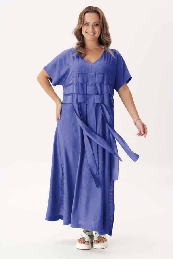 Вжух… И платье взлетело. Летом хочется уйти от официоза! Свободное, многослойное, из натуральной вискозы с авторской декорацией из плетёных полос - это не платье ….. это мечта! Свободный А-силуэт, цельнокроеный рукав, V-образный вырез. Полочка с фигурной кокеткой и плетением из лент. Спинка с фигурной кокеткой, средним швом и повторяющим полочку плетением. По боковым швам - разрезы. Длина платья около 132 см. Длина рукава с плечом около 36 см.