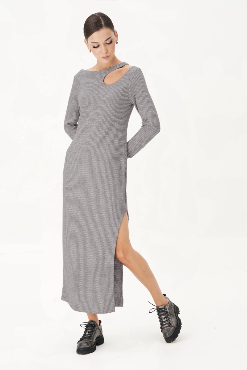 Нежное мерцание, рассыпанные по ткани искорки, не ослепляющие, а манящие словно далёкие созвездия. Невероятно комфортное трикотажное полотно с напылением, платье, на которое едва взглянув, сразу хочется надеть. Прилегающий силуэт, втачной покрой, интригующая капля в области декольте, эффектный разрез по боковому шву. Длина платья около 132 см. Длина рукава около 62 см.