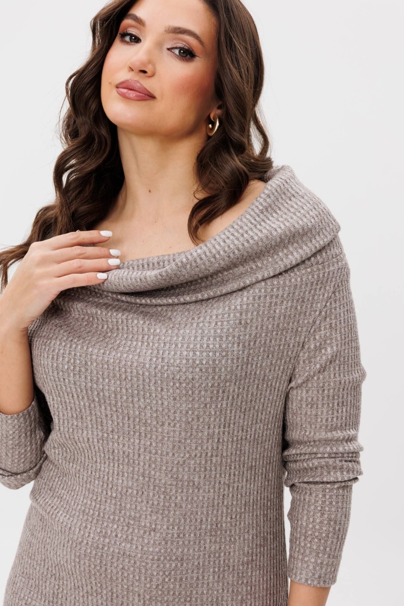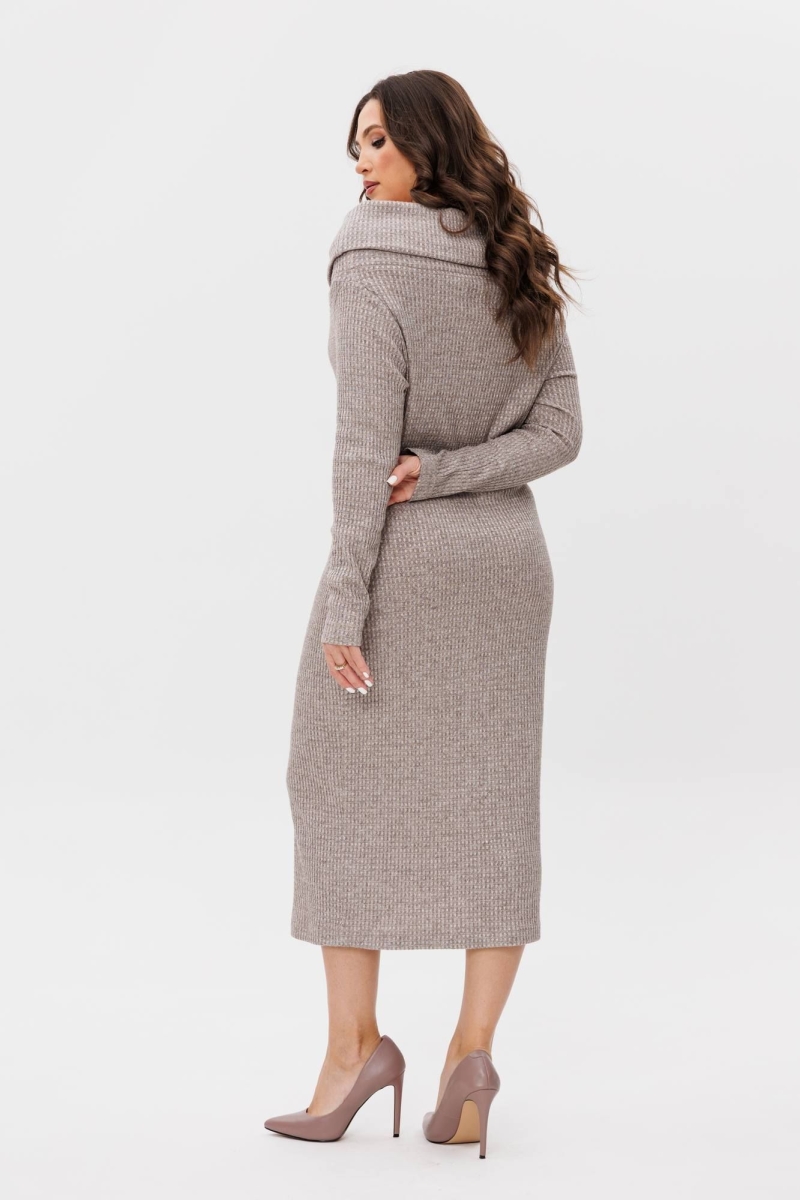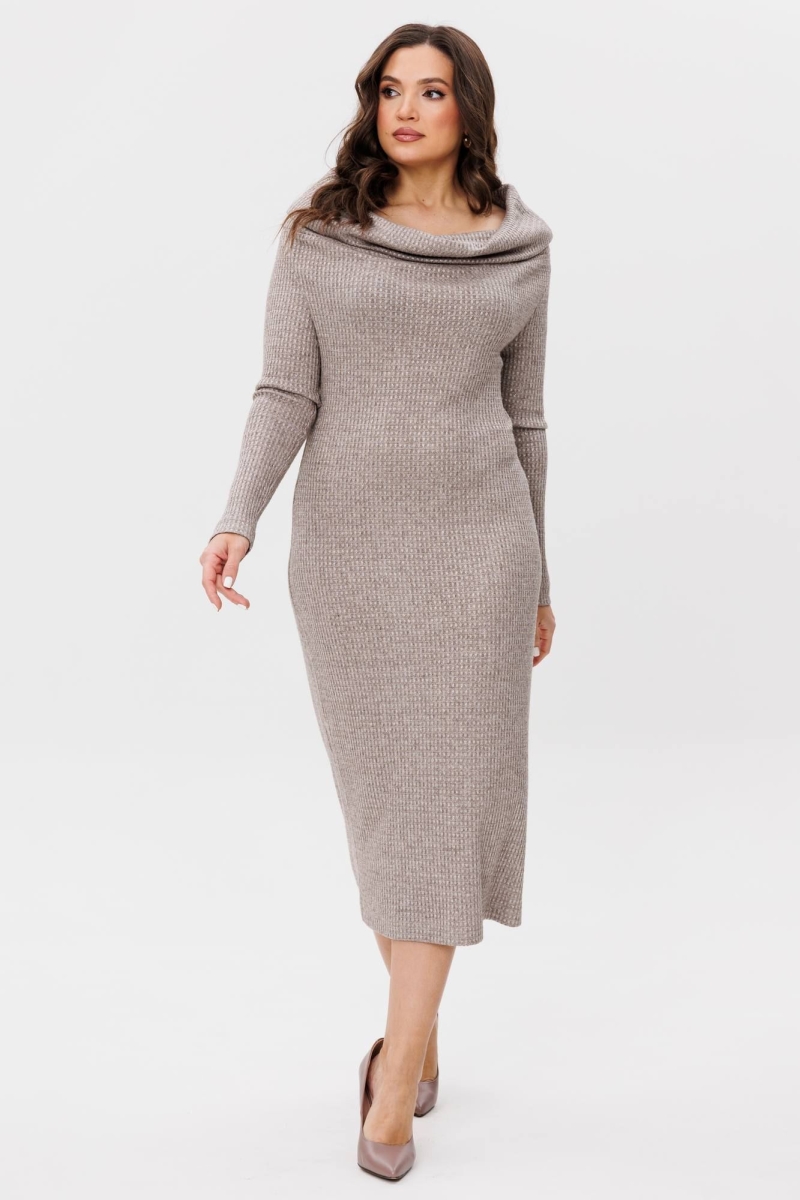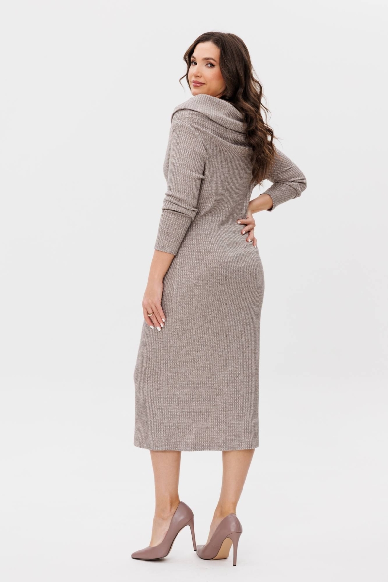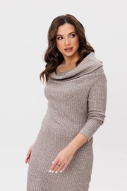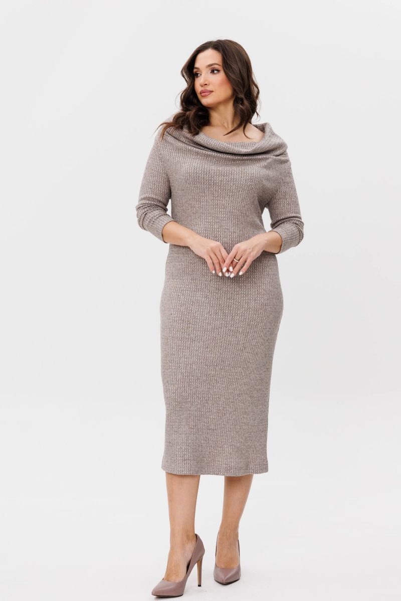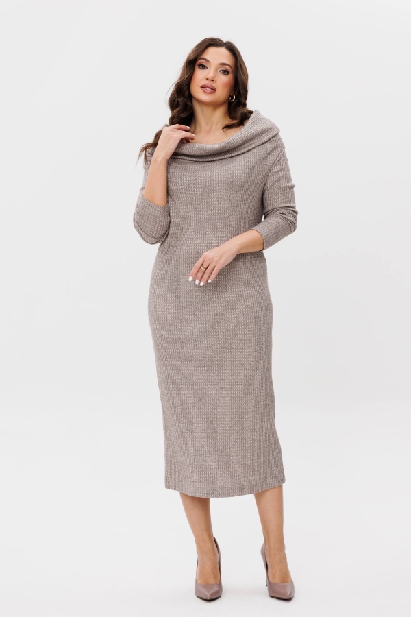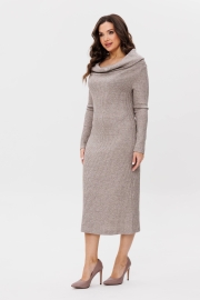 Трикотаж - это всегда модно: меняется только крой и детали. Главный плюс трикотажа - непринуждённость, комфорт и универсальность. Давно развеян стереотип о том, что трикотажное платье - нечто скучное. Платье с открытым декольте - это изысканно и актуально, тем более когда декольте легко трансформируется в воротник-хомут. Мягкий, уютный трикотаж с мерцающим эффектом, прилегающий силуэт, узкий втачной рукав и воротник-хомут. Длина платья около 90 см. Длина рукава около 62 см.