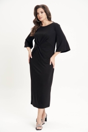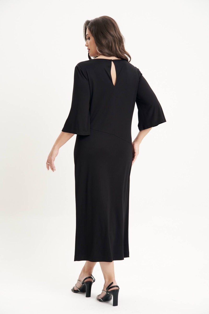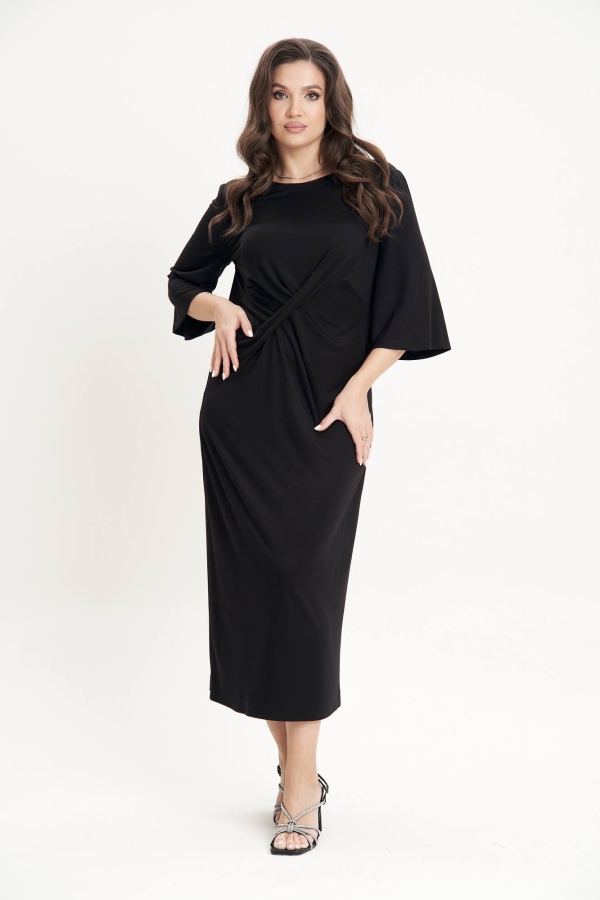 Модное платье в текущем сезоне заметно отличаются своей сдержанностью, элегантностью и женственностью! Это, пожалуй, и есть главный тренд сегодняшнего дня - проявляться и быть настоящей. Оно смотрится уместно всегда: мягкие линии и художественная драпировка придаёт ему изысканность и особый шарм, смелая конструкция со сложным подрезом - динамичность и современность. Полуприлегающий силуэт, втачной покрой, эффектный вырез лодочкой, рукав, расширенный внизу, длиной 3/4. Полочка со сложным ассиметричным подрезом и драпировкой. Спинка со средним швом и застёжкой-каплей. Длина платья около 127 см. Длина рукава около 47 см.