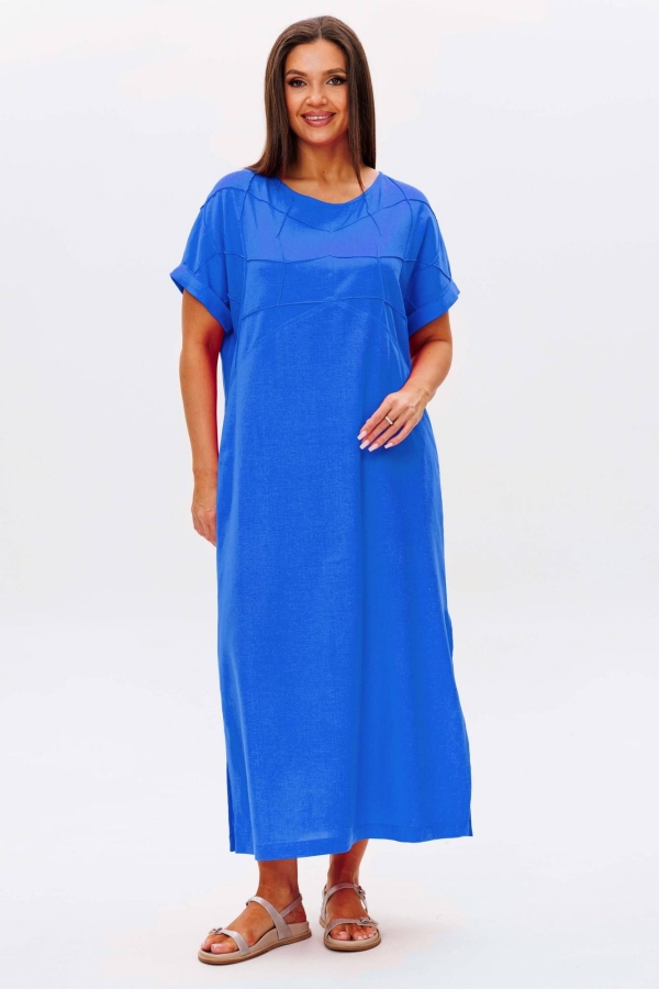 Летний сезон диктует свои требования к женской одежде-максимальная легкость, простота кроя, удобство в ношении. Ден отвечает этим требованиям на 100%. Простые линии и однотонные полотна-кто сказал, что минимализм скучный? Такое платье-основа вашего летнего гардероба! Свободный упрямленный силуэт, цельнокроенный покрой. Полочка с отрезной кокеткой, изысканно декорированной строчками-защипами. Спинка с отрезной кокеткой и застежкой каплей. По низу рукава-отложной манжет. Длина изделия около 127 см.