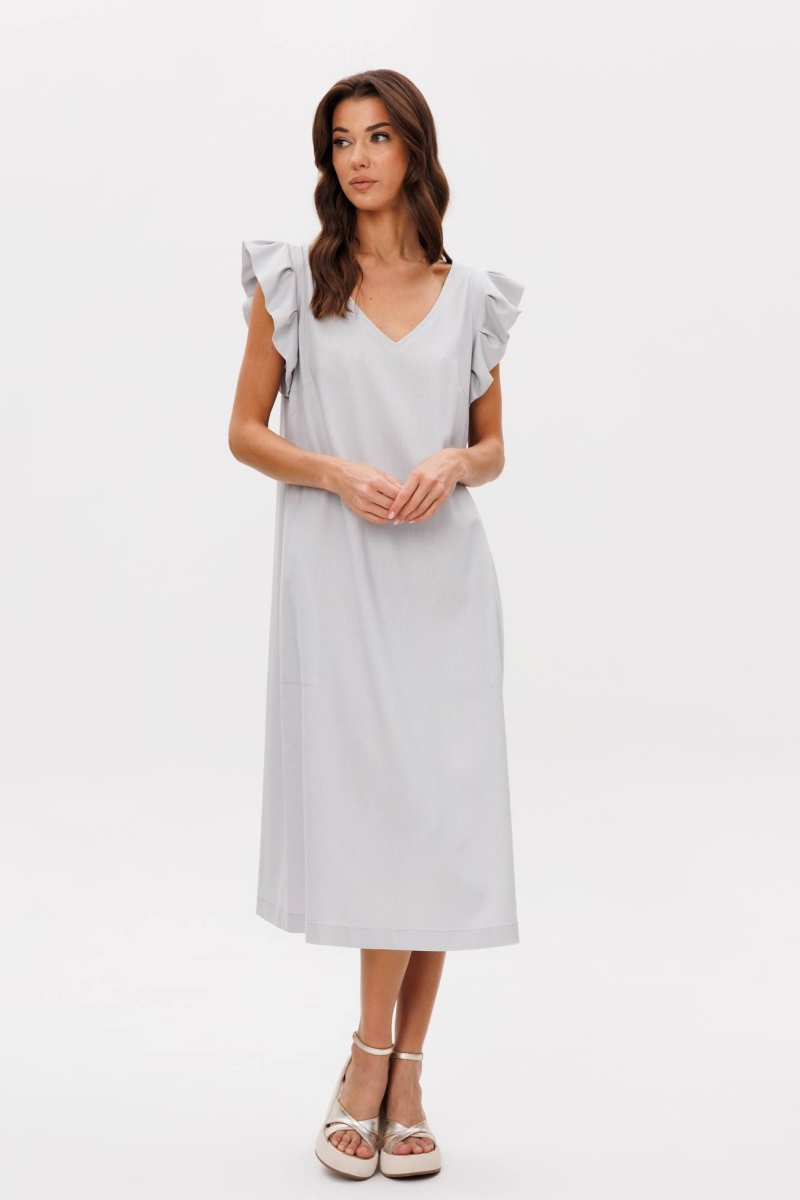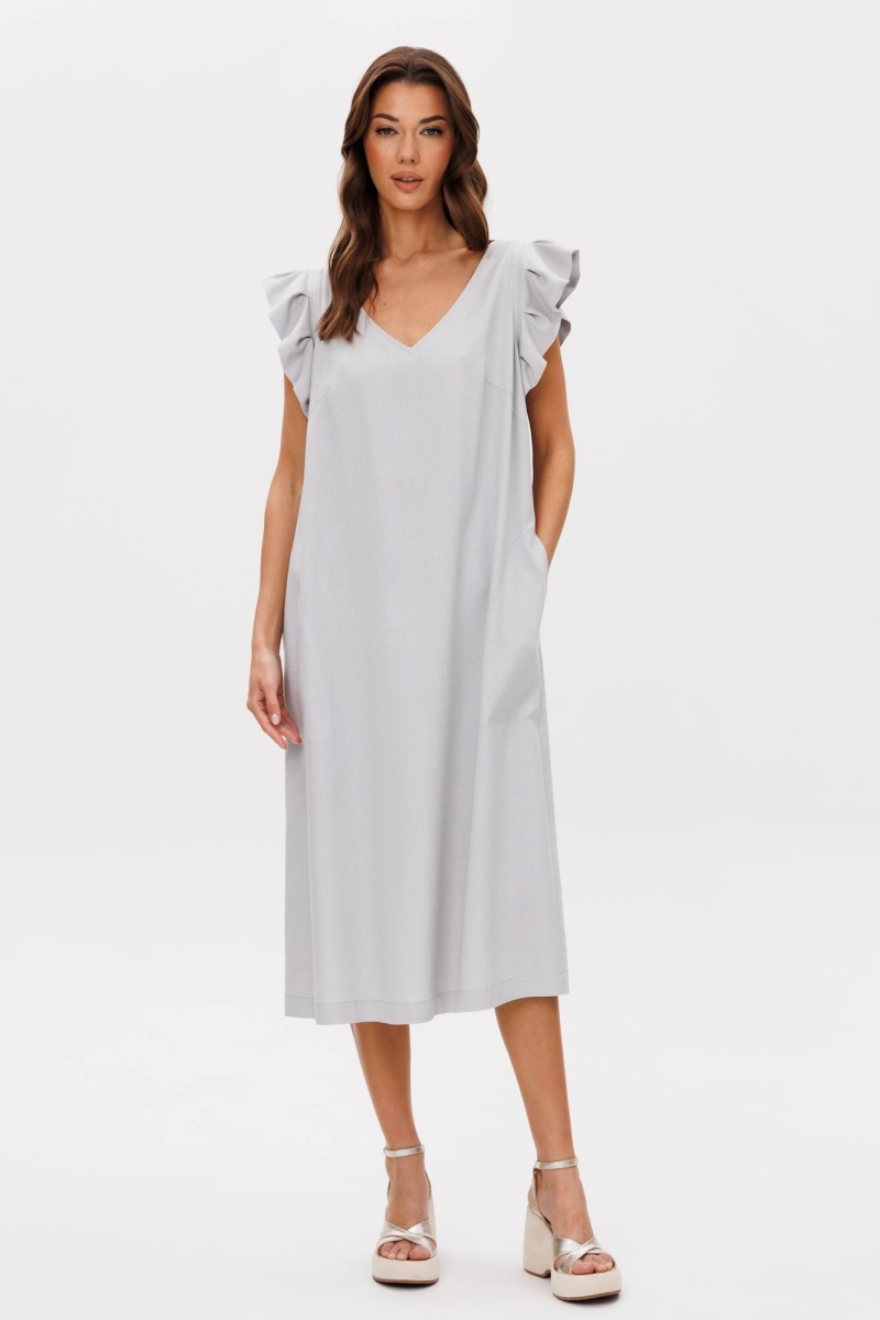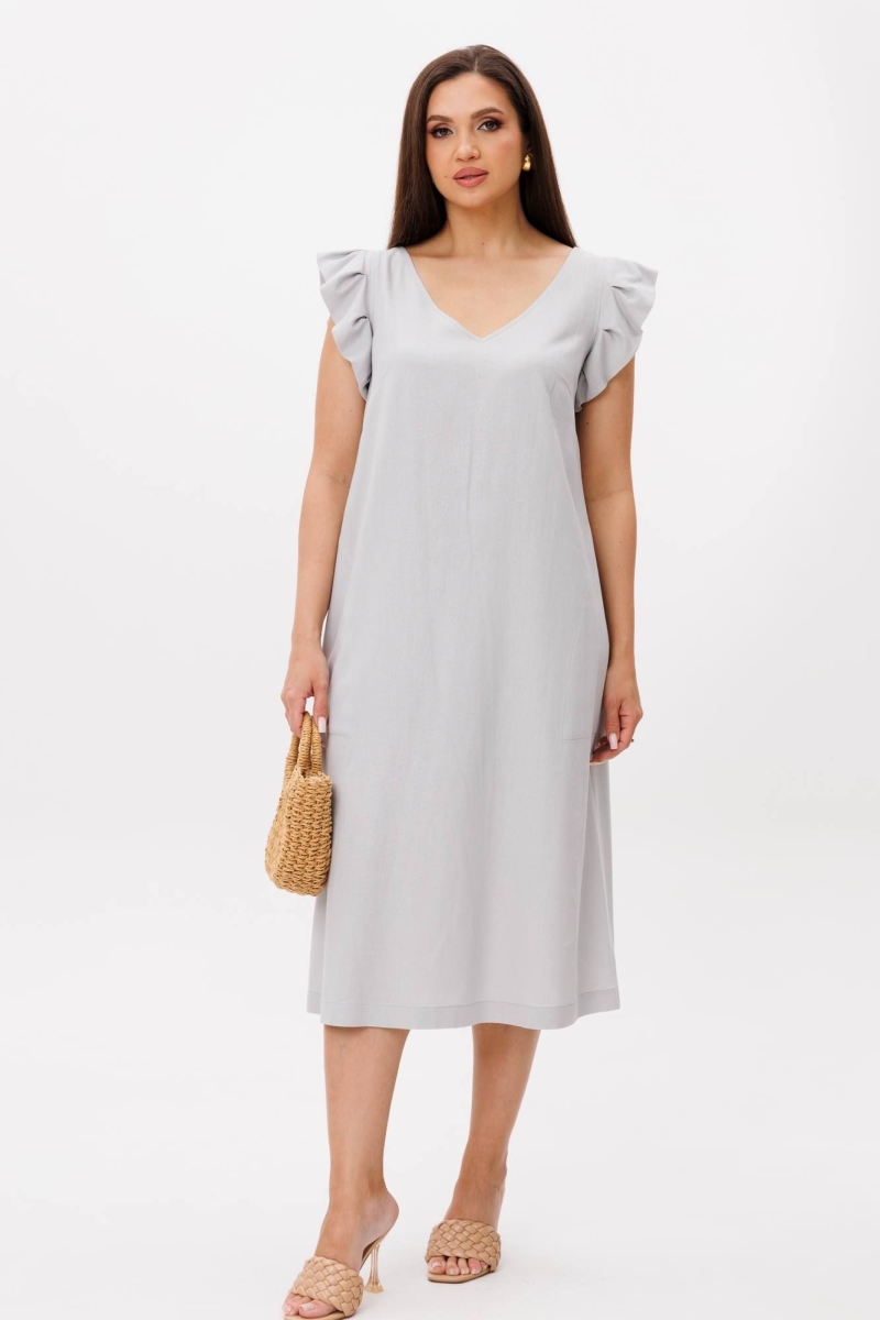 Лето идеальное время обновить гардероб и добавить в него легкость, свободу и женственность. Наше новое льняное платье-символ легкости и безупречности, оно словно создано для того, чтобы подчеркнуть вашу индивидуальность. Свободный А-силуэт, изящный V-образный вырез, романтичное крылышко, комфортная длина миди. Полочка с нагрудной вытачкой и карманом в боковом шве. Спинка со средним швом, вырезом каре и эффектной завязкой, удерживающей линию горловины. Длина платья около 114 см.