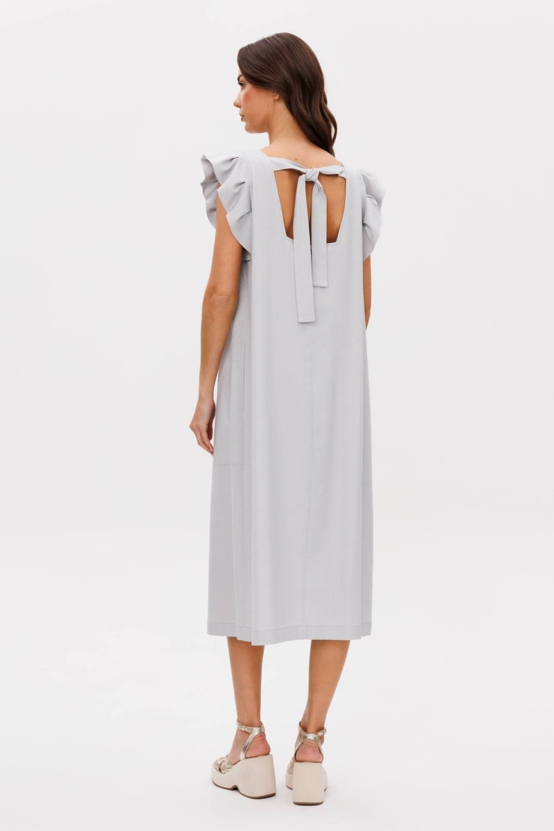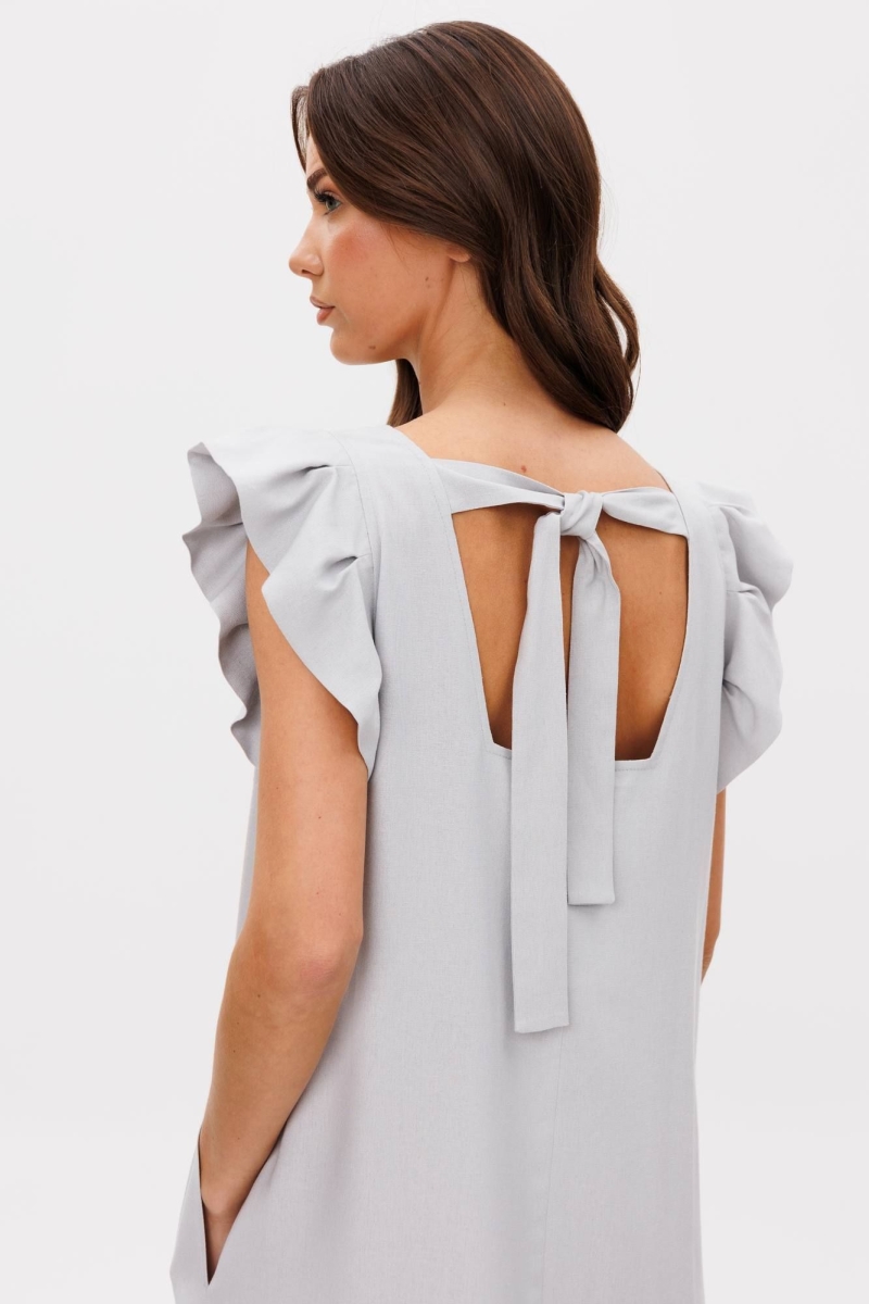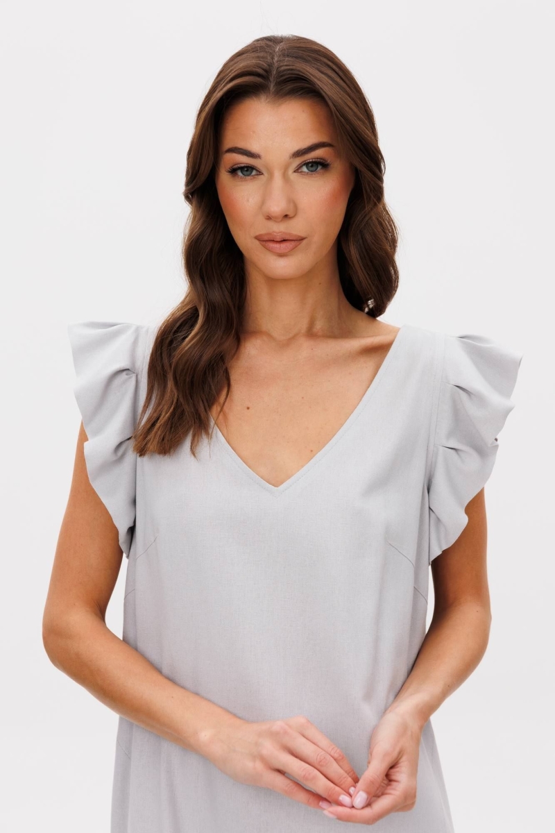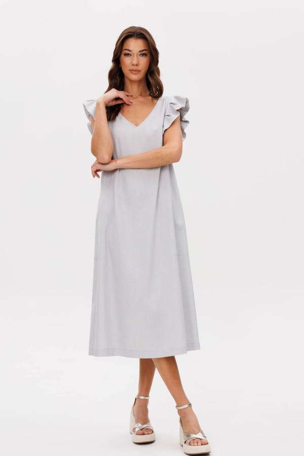 Лето идеальное время обновить гардероб и добавить в него легкость, свободу и женственность. Наше новое льняное платье-символ легкости и безупречности, оно словно создано для того, чтобы подчеркнуть вашу индивидуальность. Свободный А-силуэт, изящный V-образный вырез, романтичное крылышко, комфортная длина миди. Полочка с нагрудной вытачкой и карманом в боковом шве. Спинка со средним швом, вырезом каре и эффектной завязкой, удерживающей линию горловины. Длина платья около 114 см.