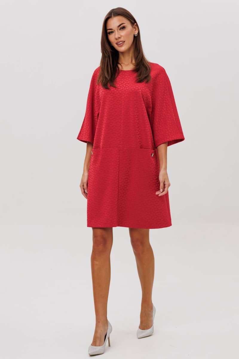 Стильное платье из жаккардового трикотажа — идеальный баланс комфорта и структуры. Фактурное полотно держит форму, создавая чистый силуэт, а свободный крой и функциональные карманы добавляют расслабленную лёгкость. Модель, которая моментально делает образ современным и уверенным.