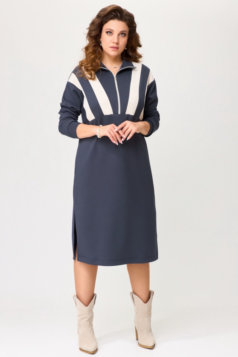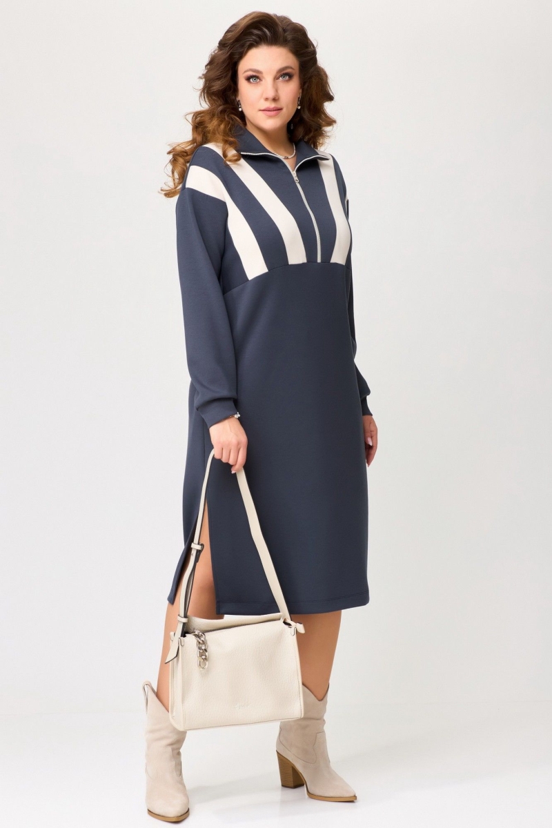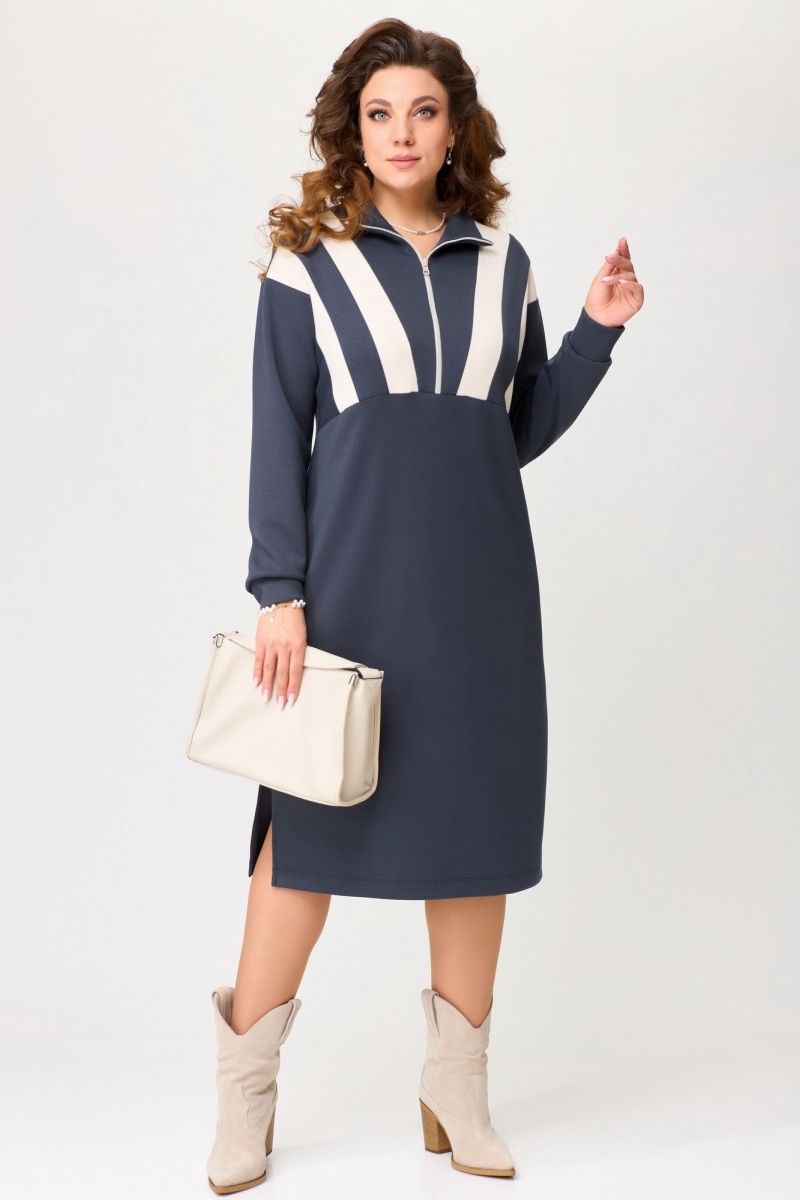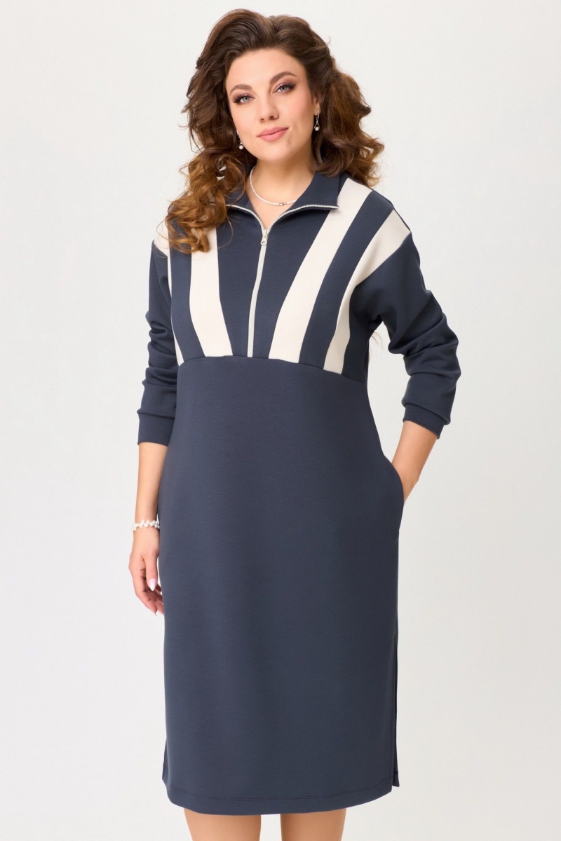 Женское трикотажное платье "Ванесса" выполнено из высококачественного турецкого трикотажного полотна. Ткань не скатывается, очень практичная в носке, мягкая и эластичная. Платье из трикотажа имеет хороший стрейч, что делает очень удобным и стильным в спорт-шик стиле. Платье прямого силуэта, со спущенным рукавом, по полочке нижу груди декоративный подрез. В платье застежка на молнию и на груди декоративные трикотажные вставки. Воротник - стойка, по низу рукава манжет, в боковых швах разрезы, низ изделия обработан на распошивалку. Элегантное трикотажное платье отлично подойдет для выхода в город, на прогулку и для повседневной носки дома.