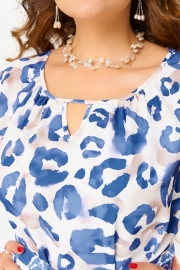 Расширенный силуэт придаёт образу лёгкость и грацию, а сборка по горловине с декоративной капелькой добавляет изысканный акцент. Край горловины и проймы аккуратно обработан окантовкой, создавая завершённый вид.