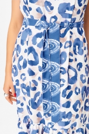 Отрезной волан по низу платья, собранный на сборку, придаёт динамику и романтичность, а безупречная обработка низа подчёркивает внимание к деталям. Завершающим штрихом становится съёмный пояс, который позволяет подчеркнуть талию и создать идеальный силуэт.