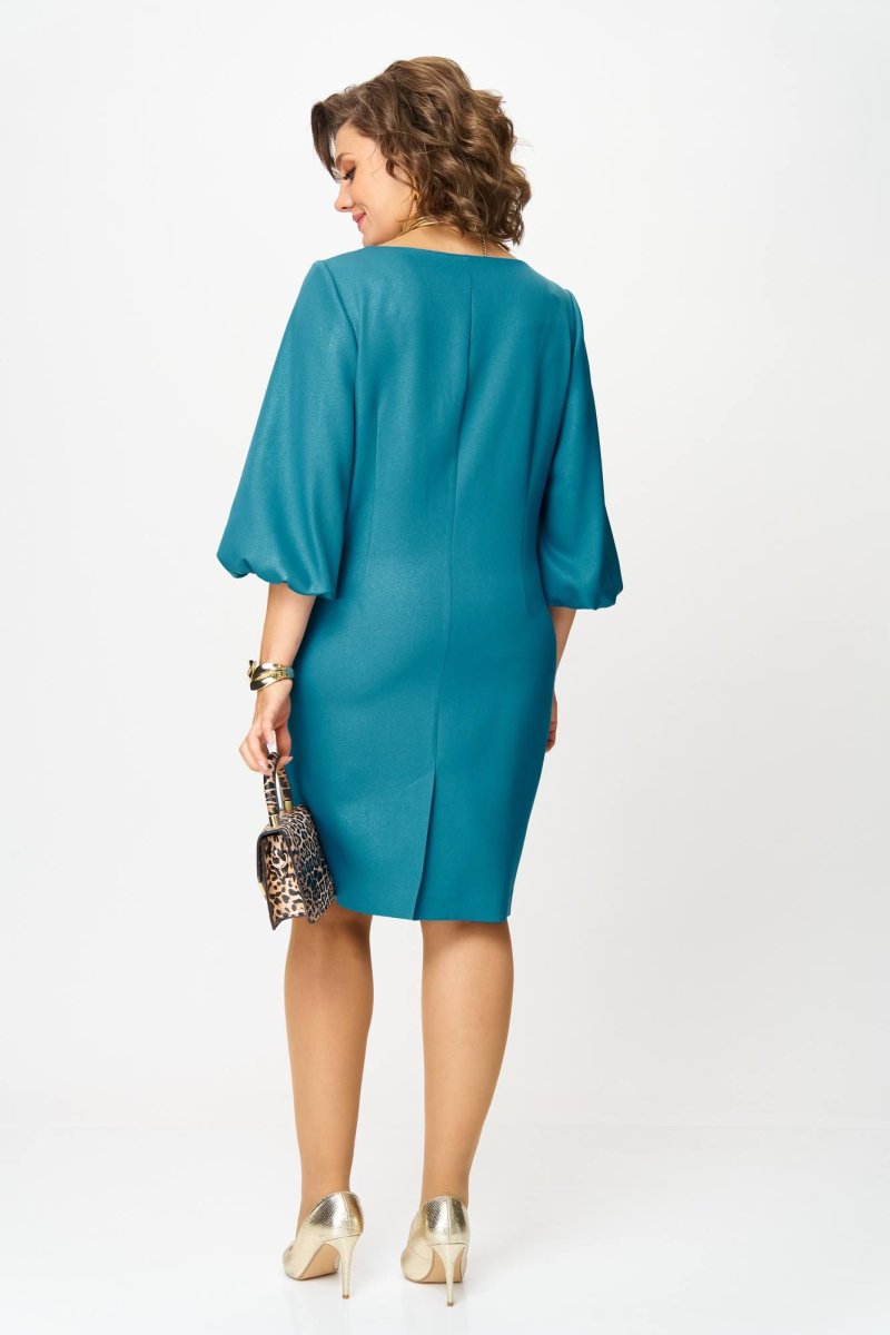 Нарядное платье выполнено из вискозной ткани с легким блеском. Платье имеет вырез лодочкой, который элегантно подчеркивает линию шеи. Объемные рукава добавляют романтичности и воздушности, создавая эффект легкой драпировки. Длина платья 97 см, длина рукава 47 см. Идеальный выбор для вечерних мероприятий и торжеств.