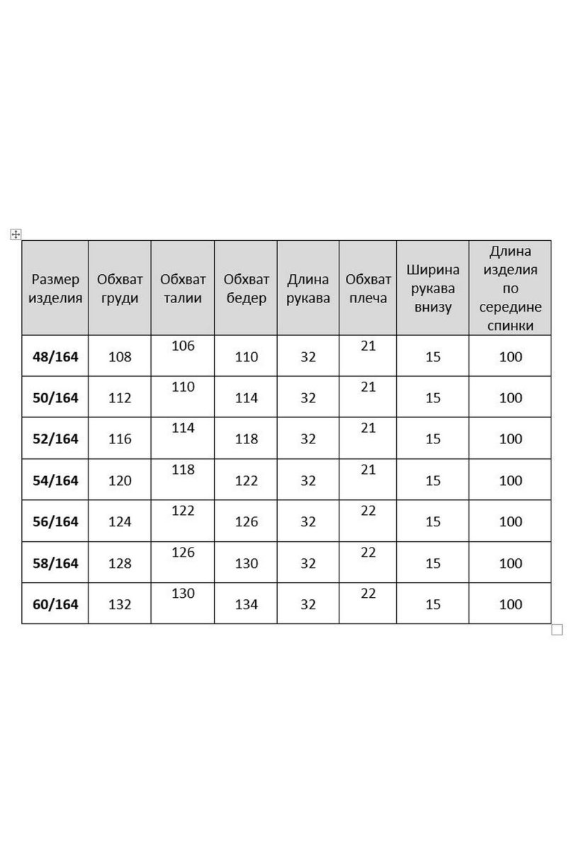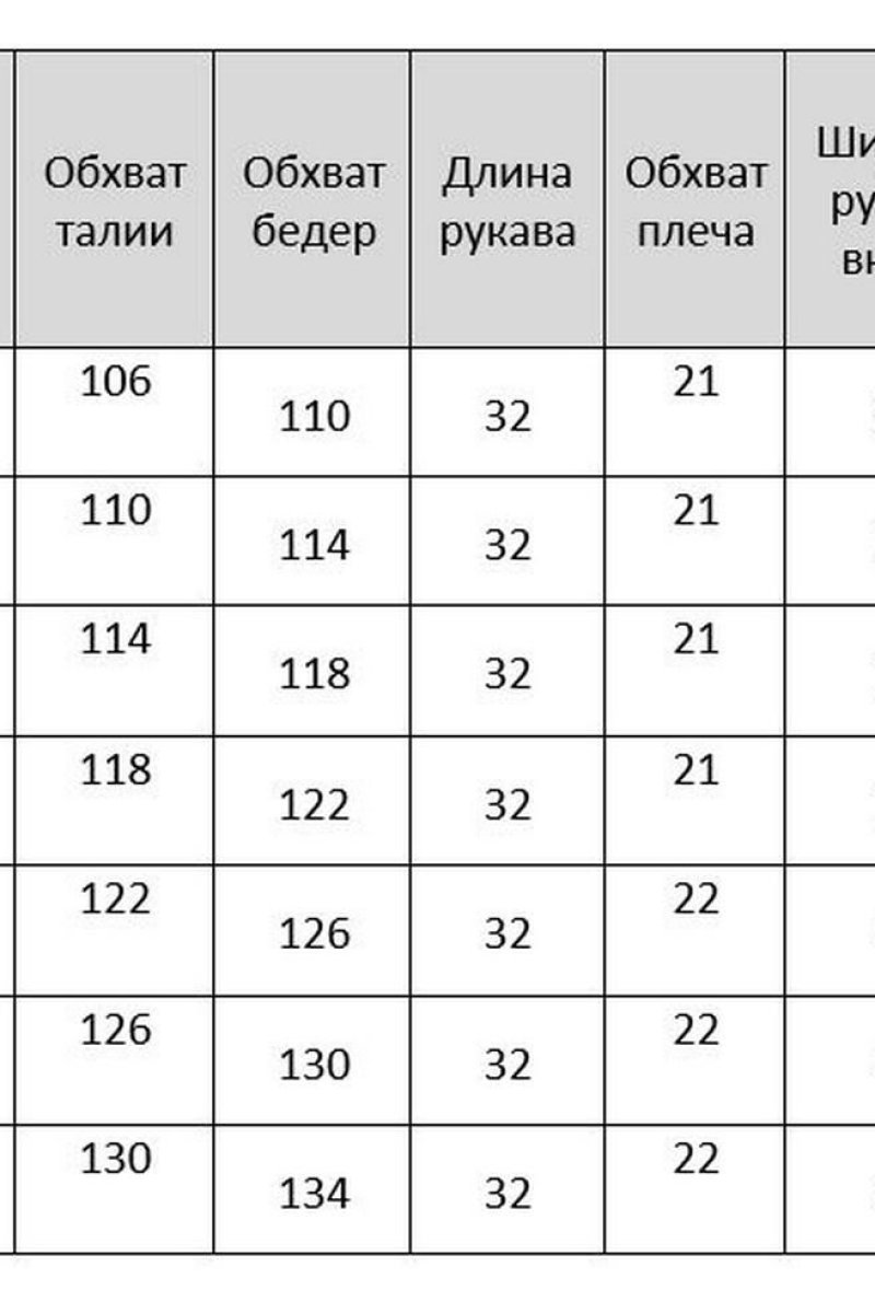 | Размер | Обхват груди (см) Грудь | Обхват талии (см) Талия | Обхват бедер (см) Бедра |