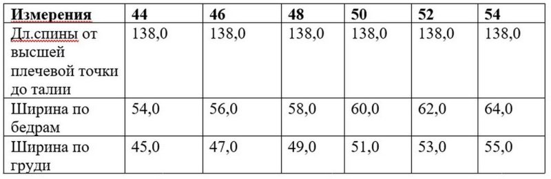 | Размер | Обхват груди (см) Грудь | Обхват талии (см) Талия | Обхват бедер (см) Бедра |