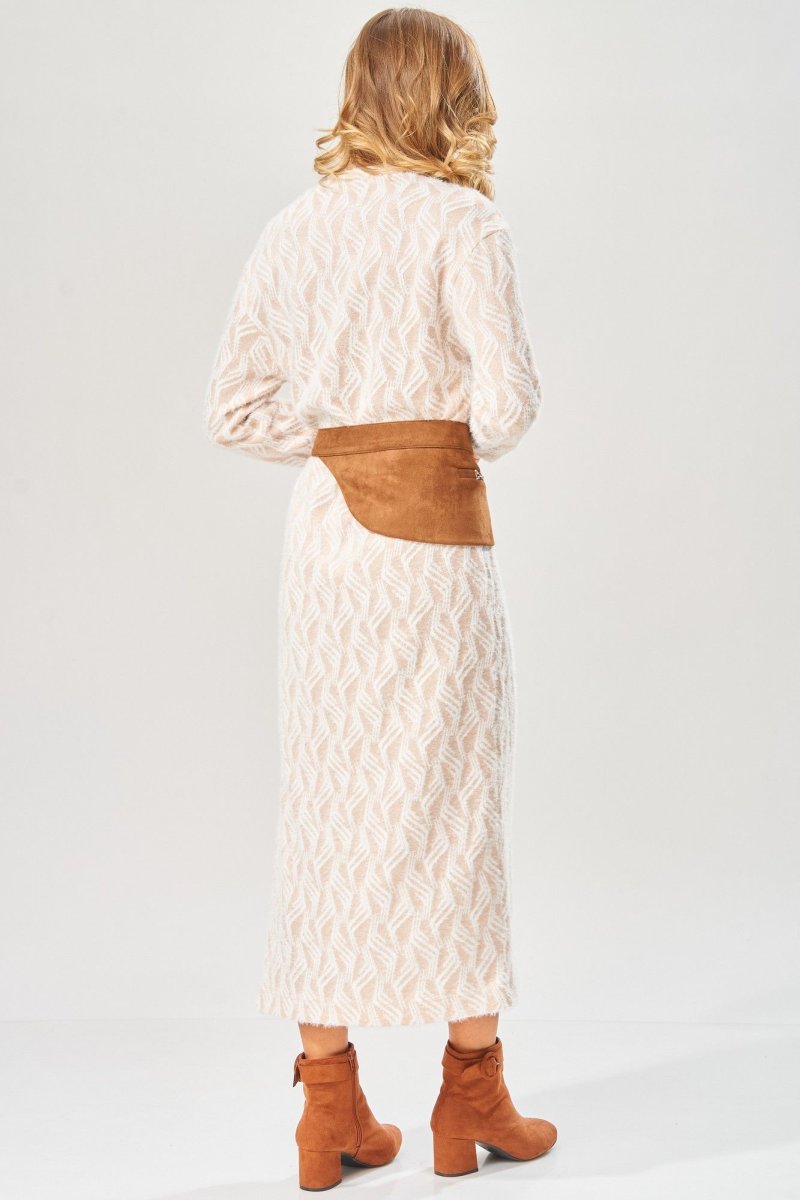 Трикотажное платье от LAIKONY прямого силуэта длиной макси со съемным поясом-карманом.