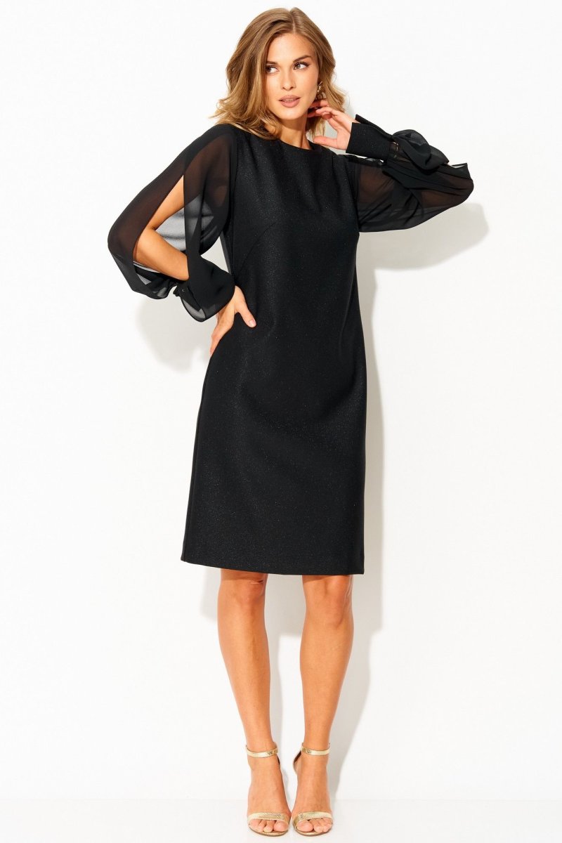 Нарядное трикотажное платье от LAIKONY расширенного силуэта длиной миди.