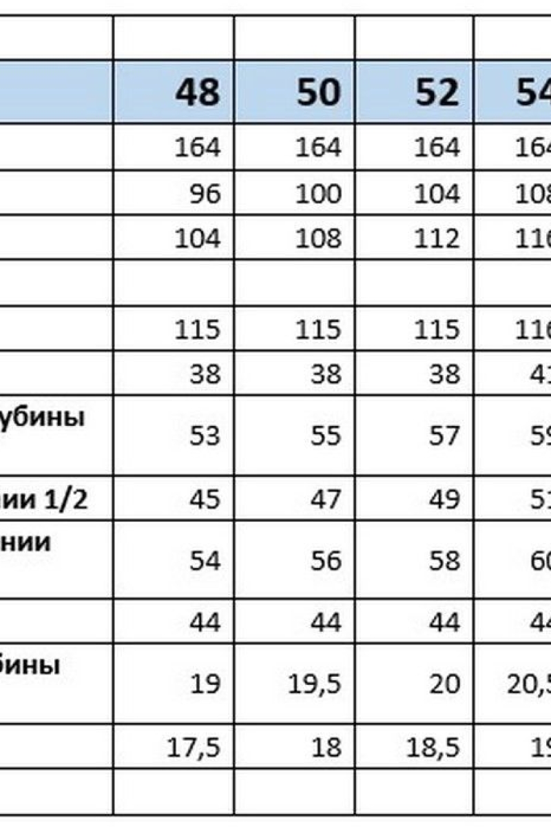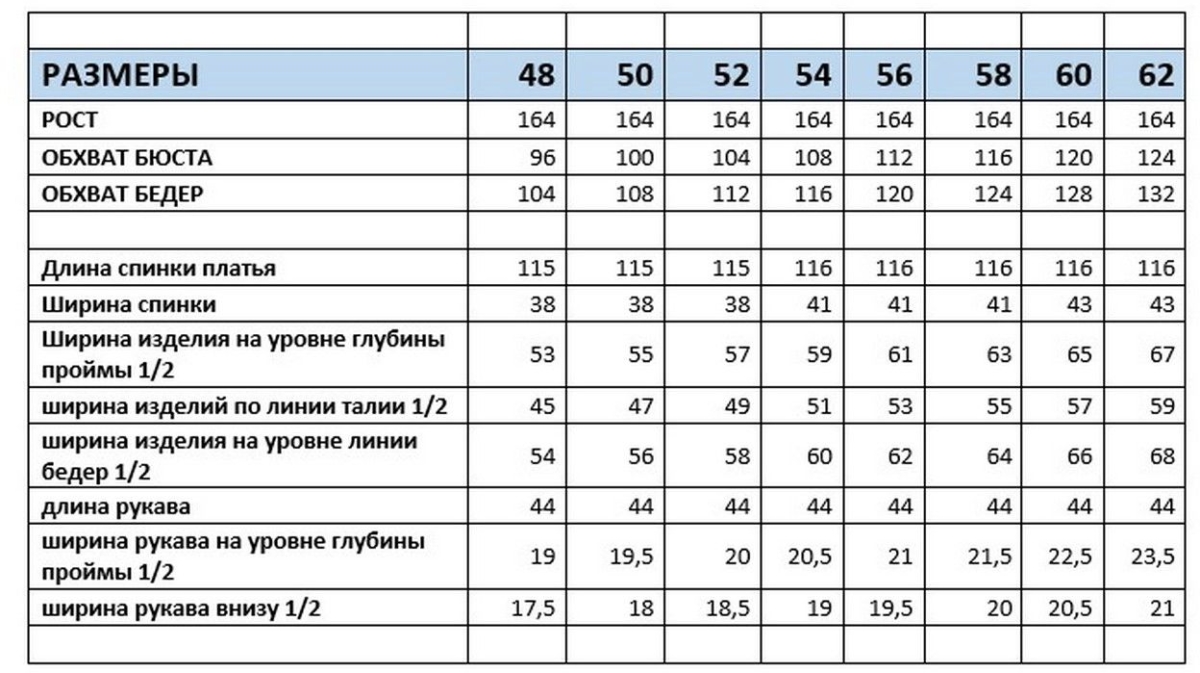 Размеры: 44, 46, 48, 50, 52, 54, 56, 58, 60